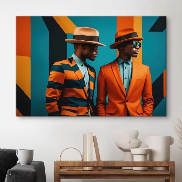 carta da parati Due uomini in abiti eleganti e cappelli nr. s48091