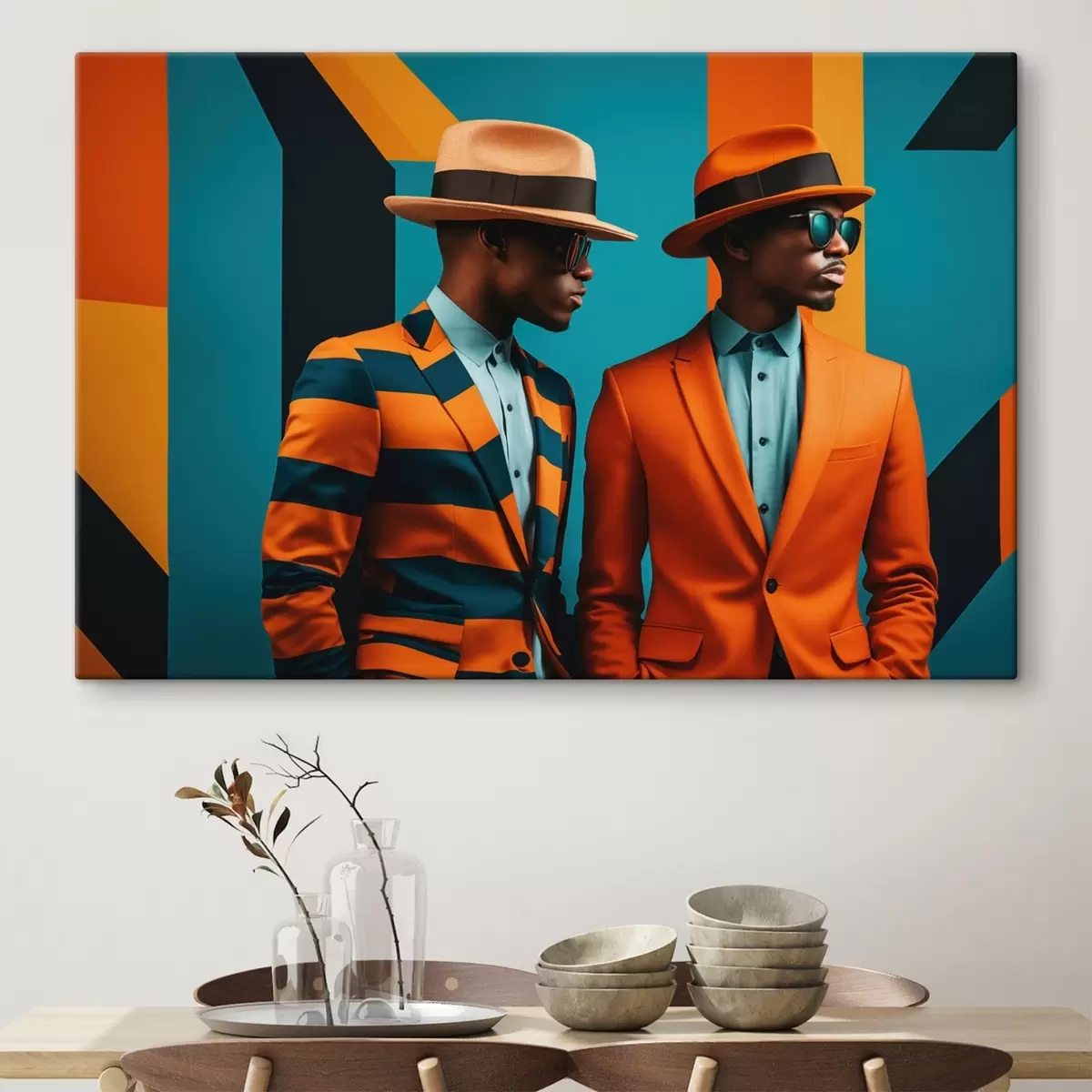 Quadri Due uomini in abiti eleganti e cappelli Nr s48091
