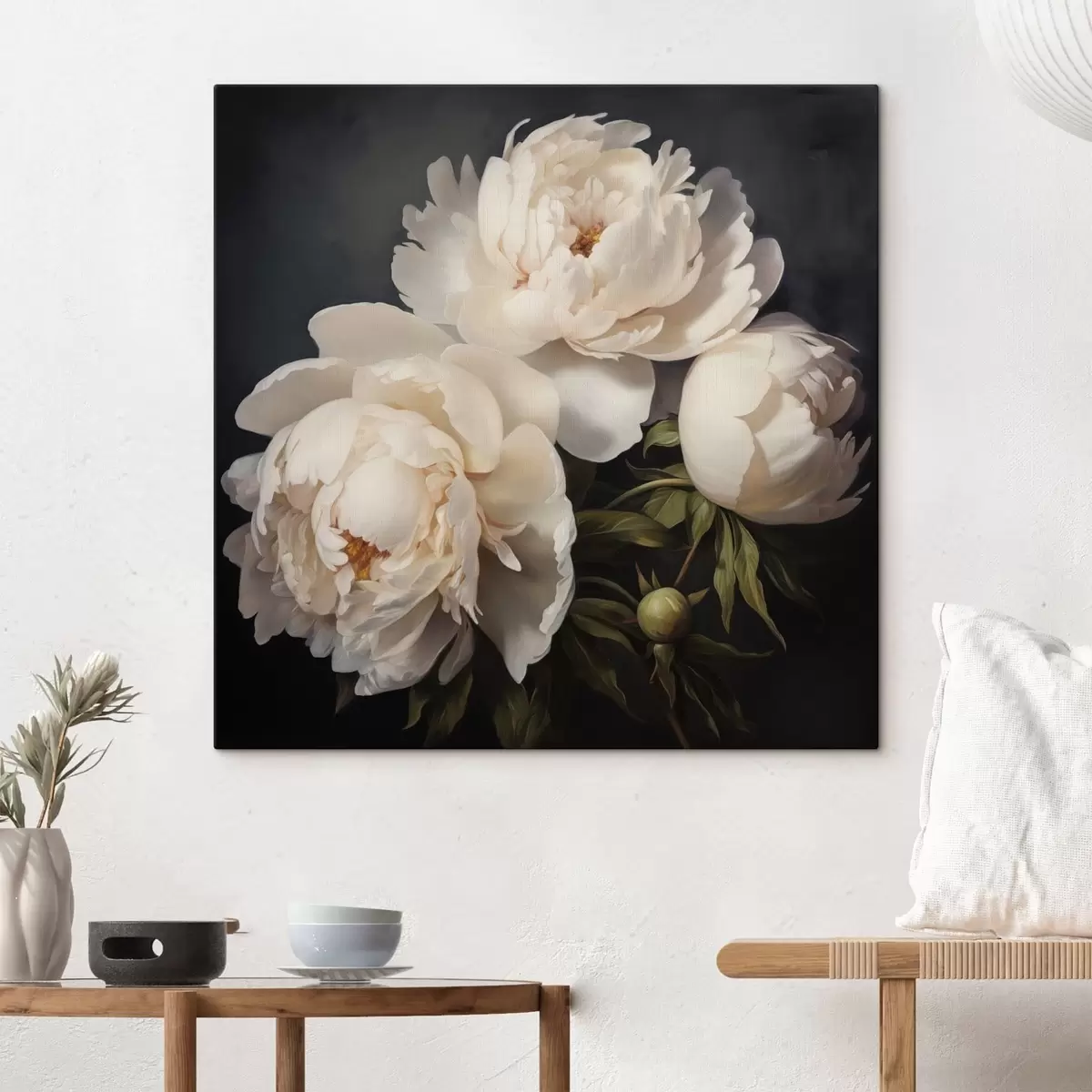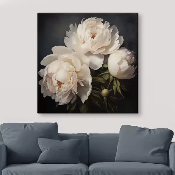 Quadri Peonie bianche su sfondo scuro Nr s48101