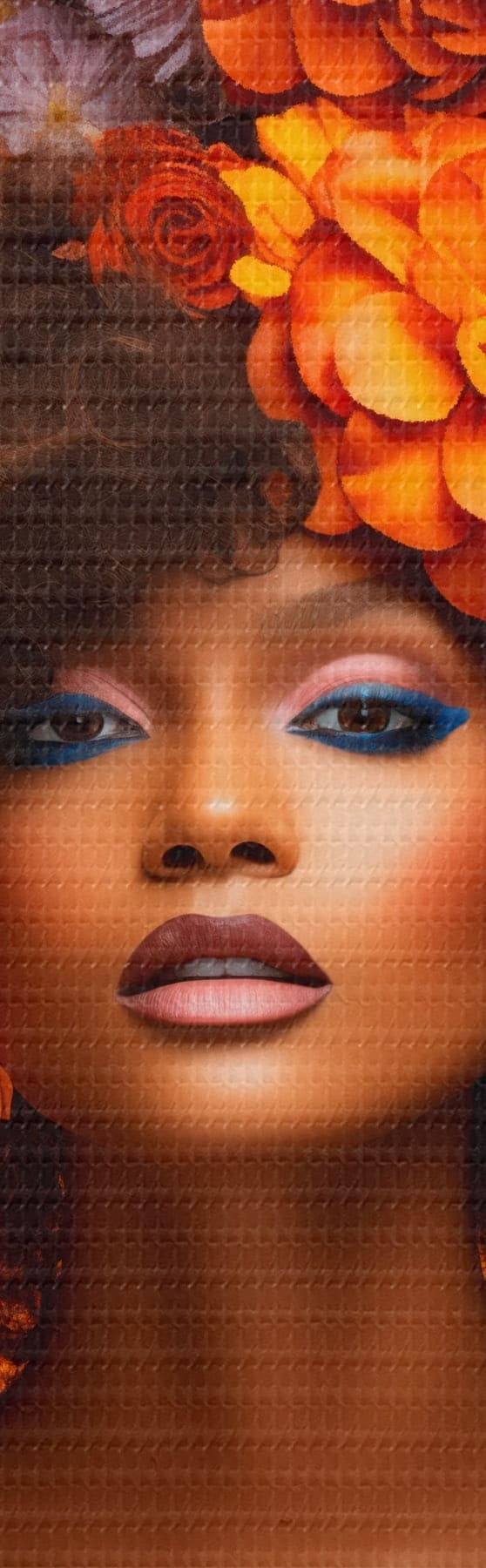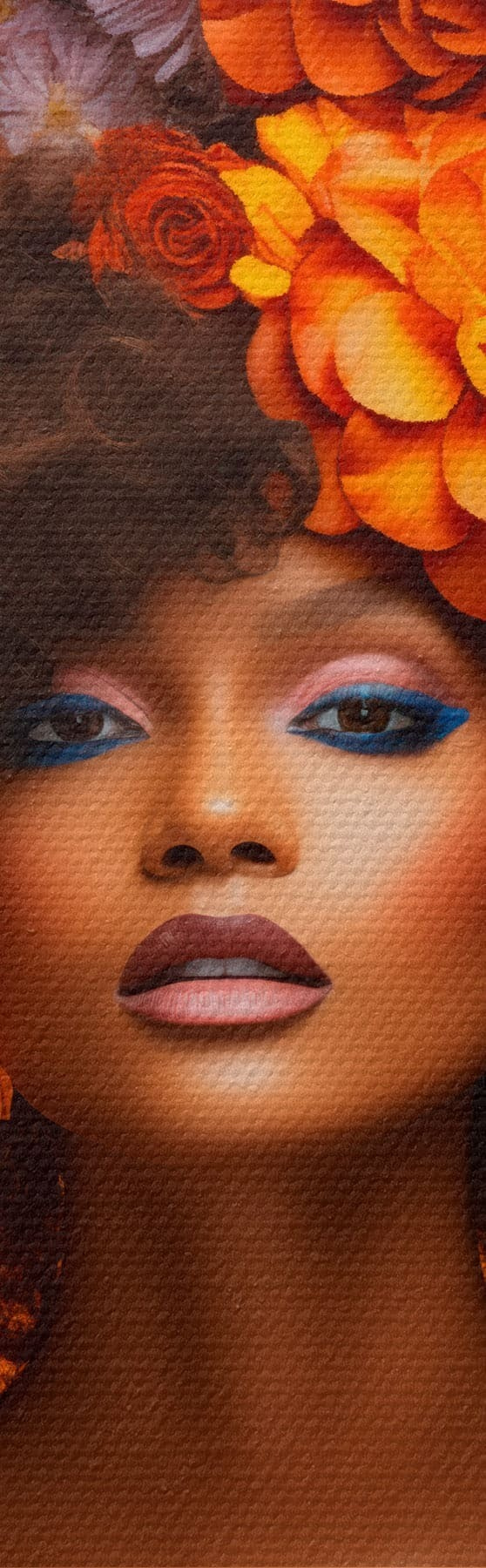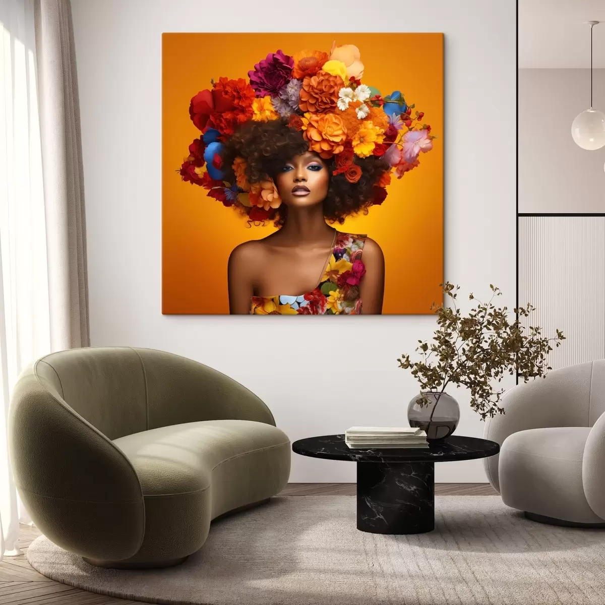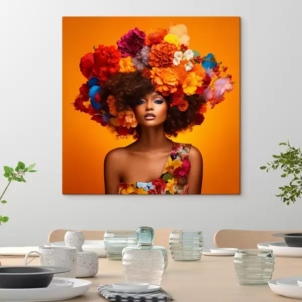 Quadri Donna con copricapo floreale su sfondo arancione Nr s48102