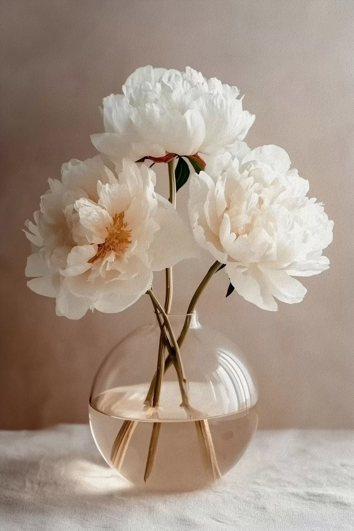 Quadri natura morta ariosa e minimalista con peonie Nr s48119