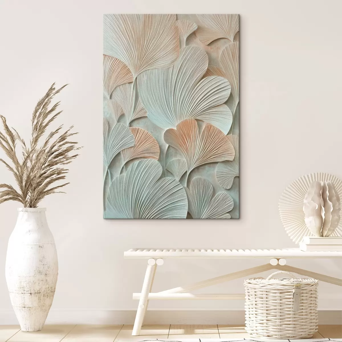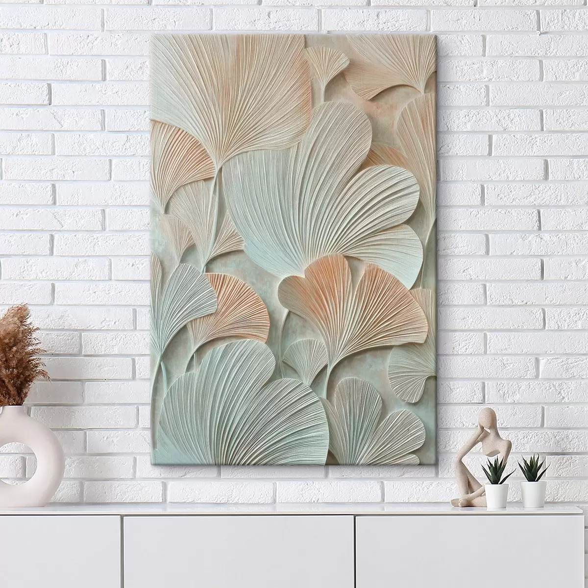 Quadri Foglie di ginkgo biloba stilizzate con texture tridimensionale in tonalità pastello Nr s48209