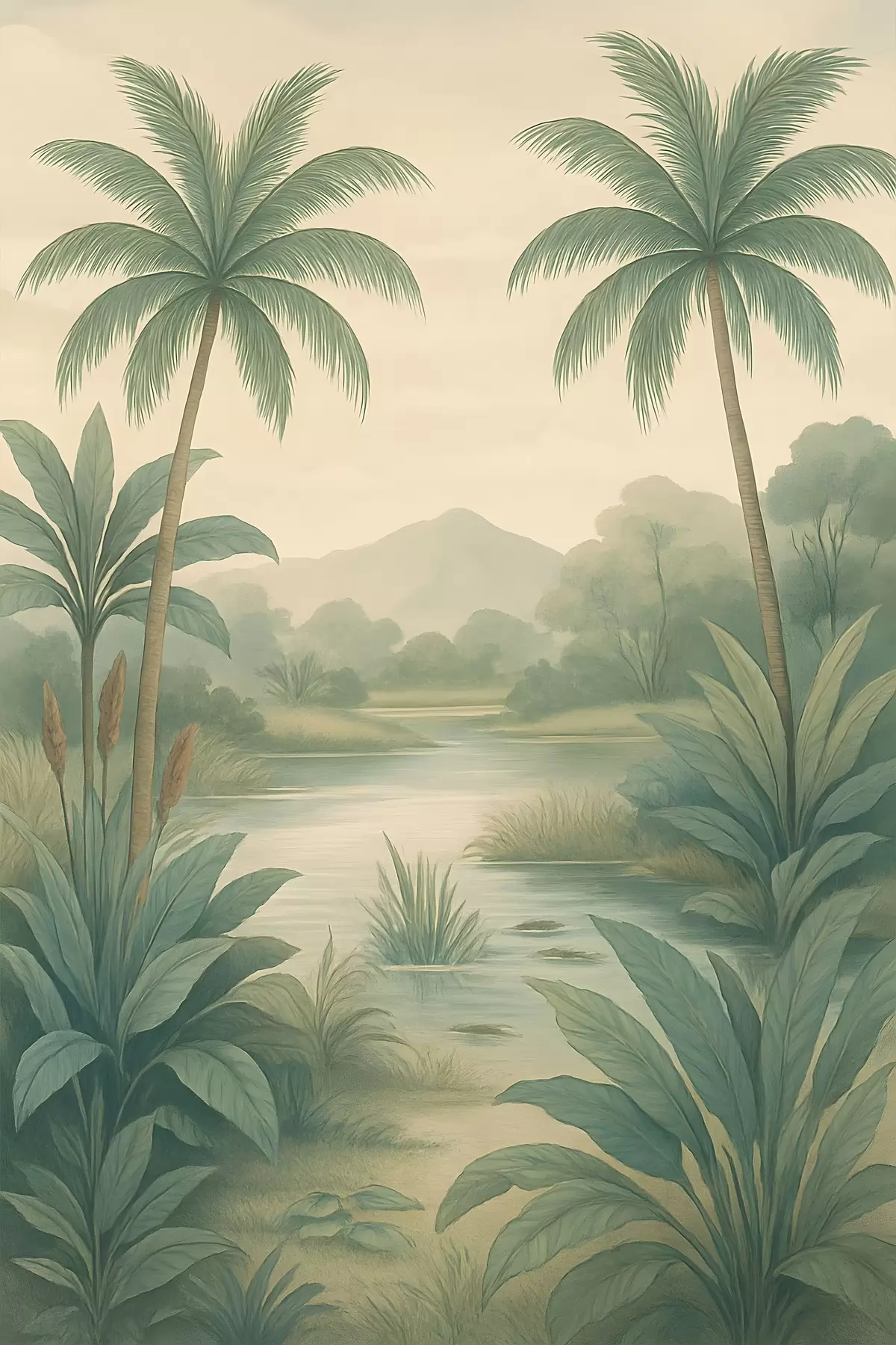 carta da parati paesaggio tropicale in stile retrò nr. s48296