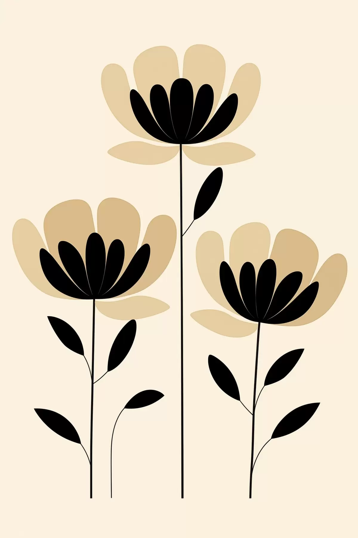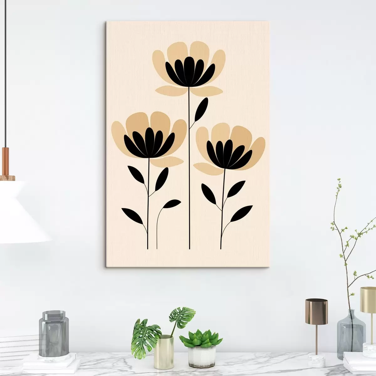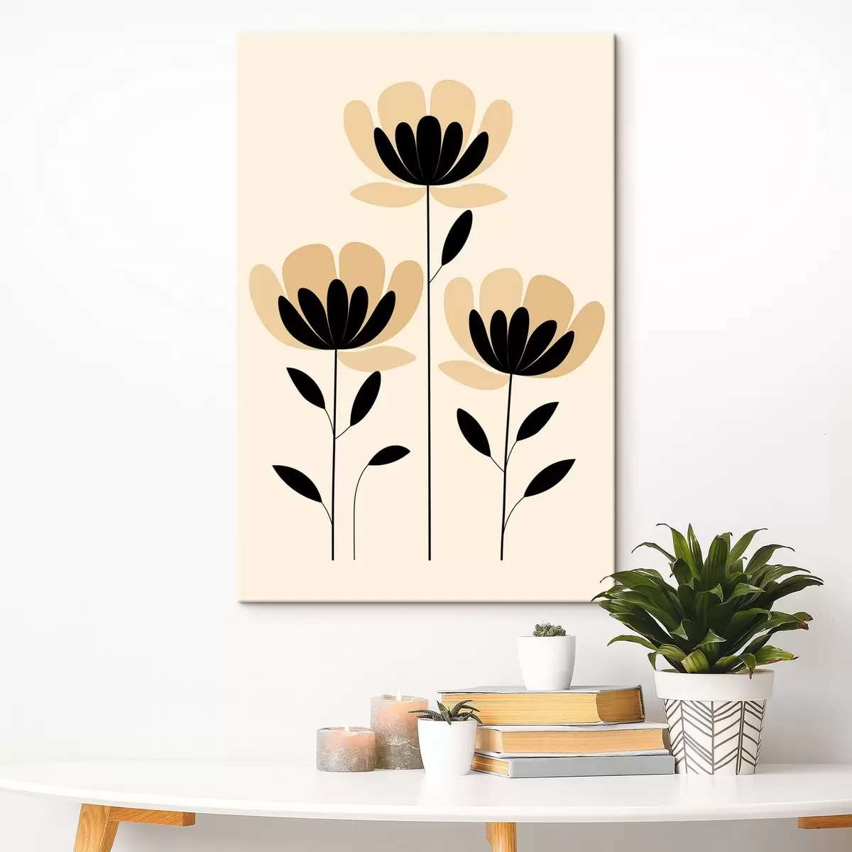 Quadri Fiori in stile minimalista nei toni del nero e del beige Nr s48353