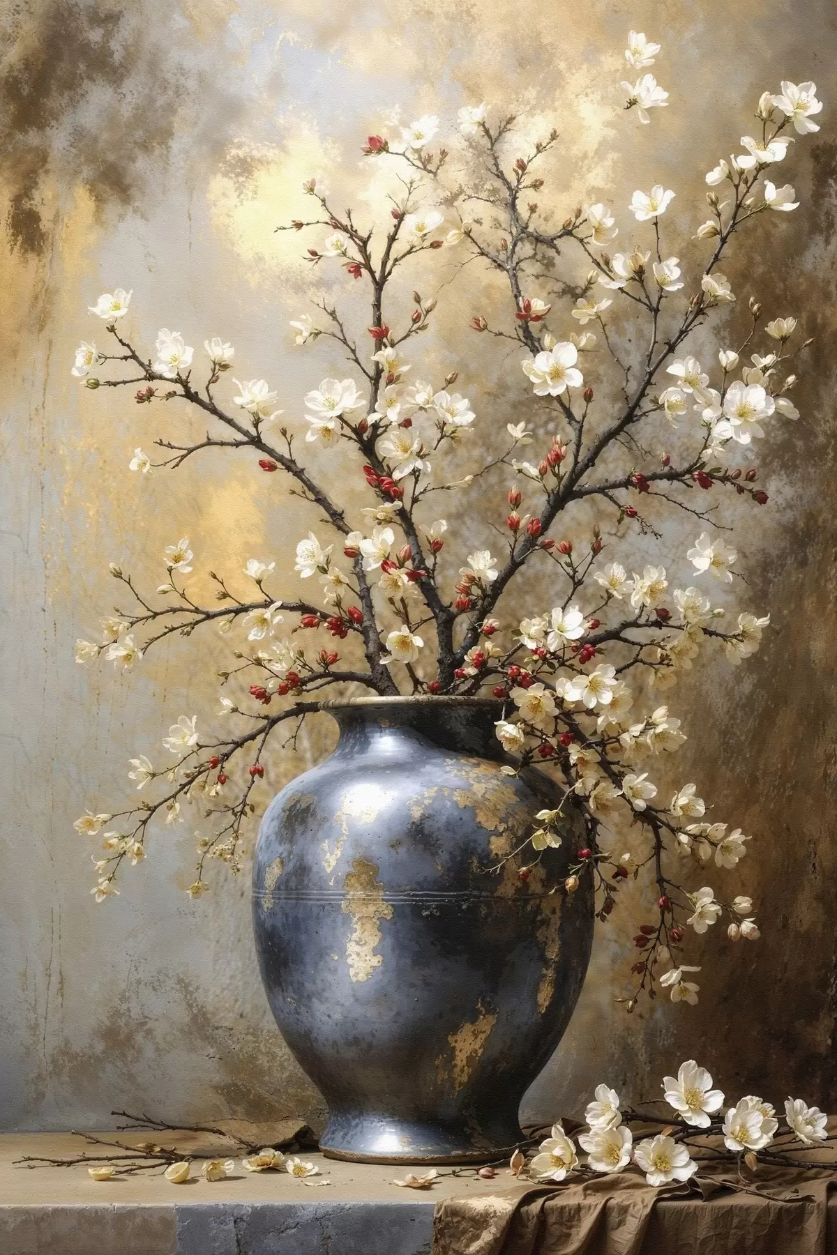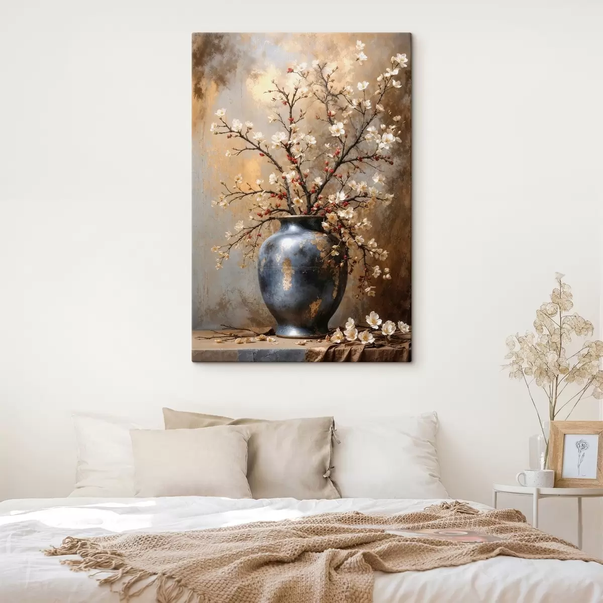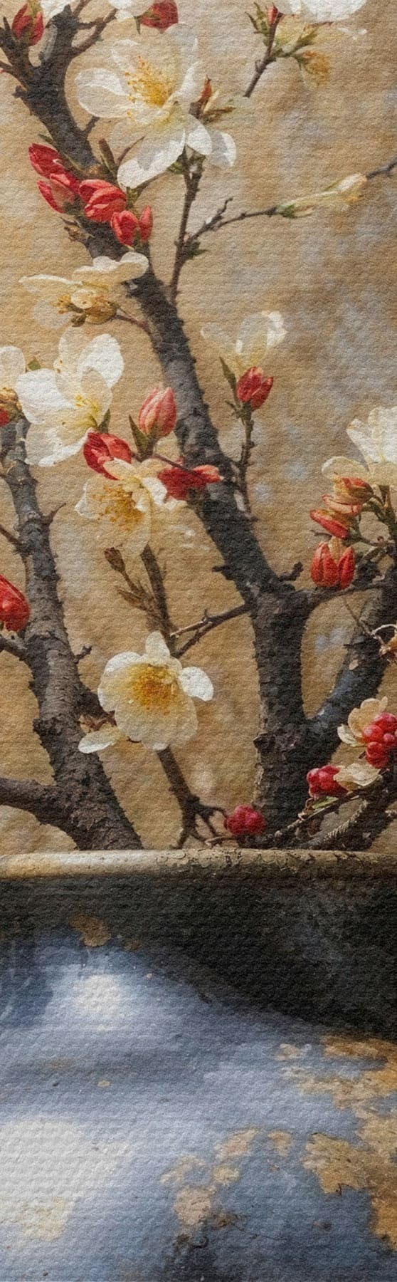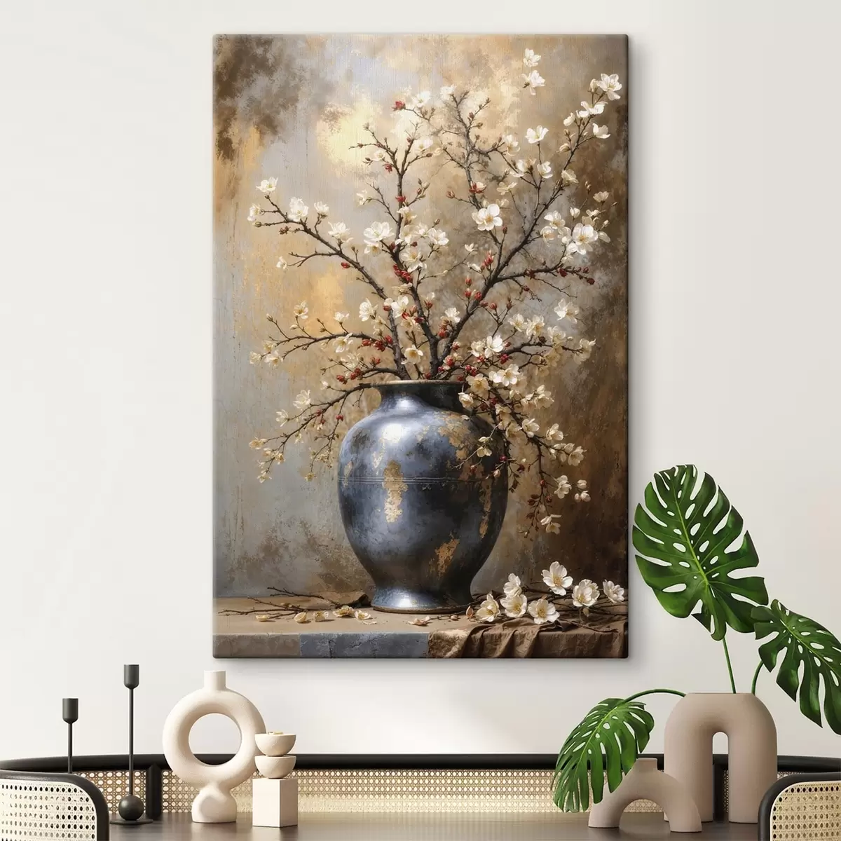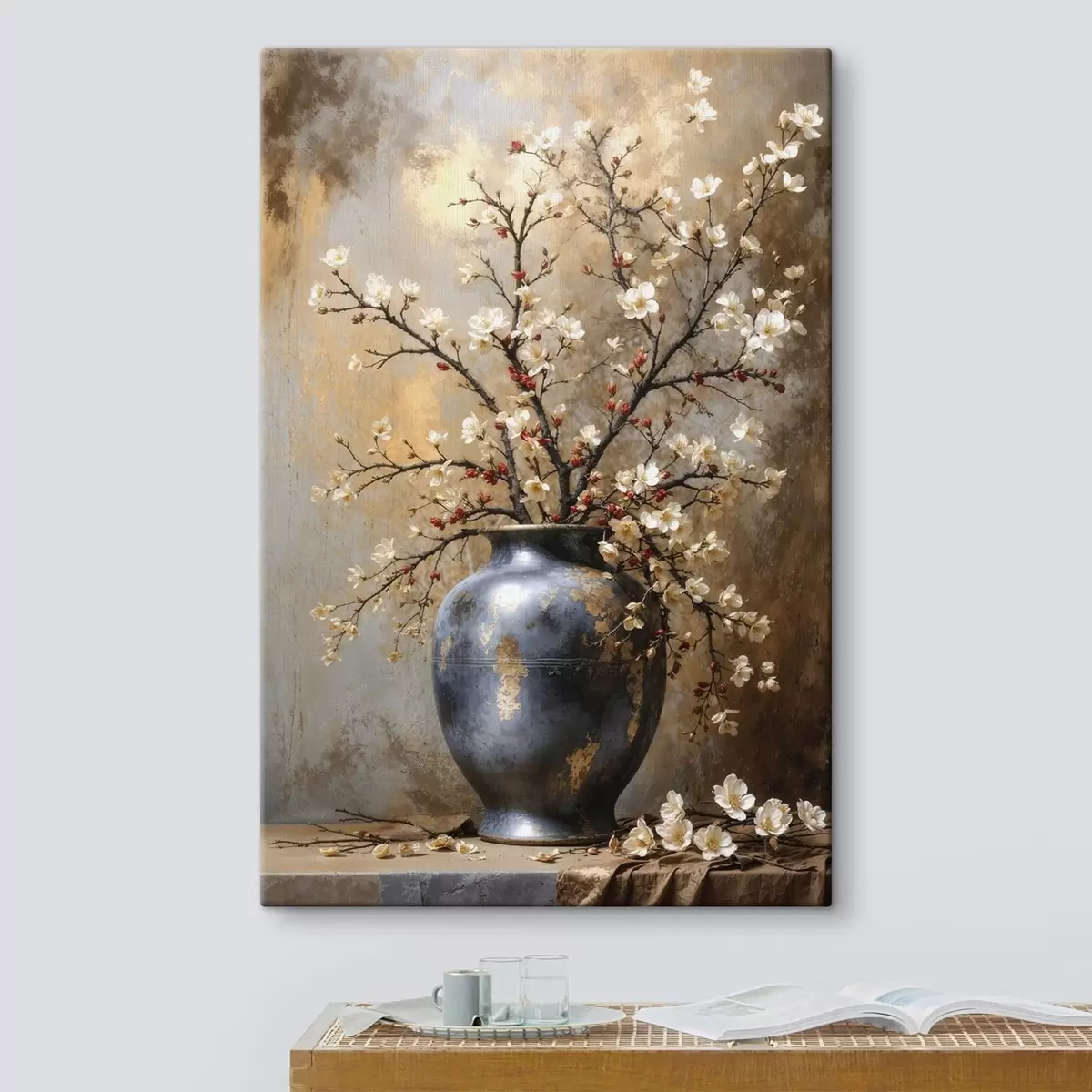 Quadri Rami in fiore in un vaso su sfondo neutro Nr s48361
