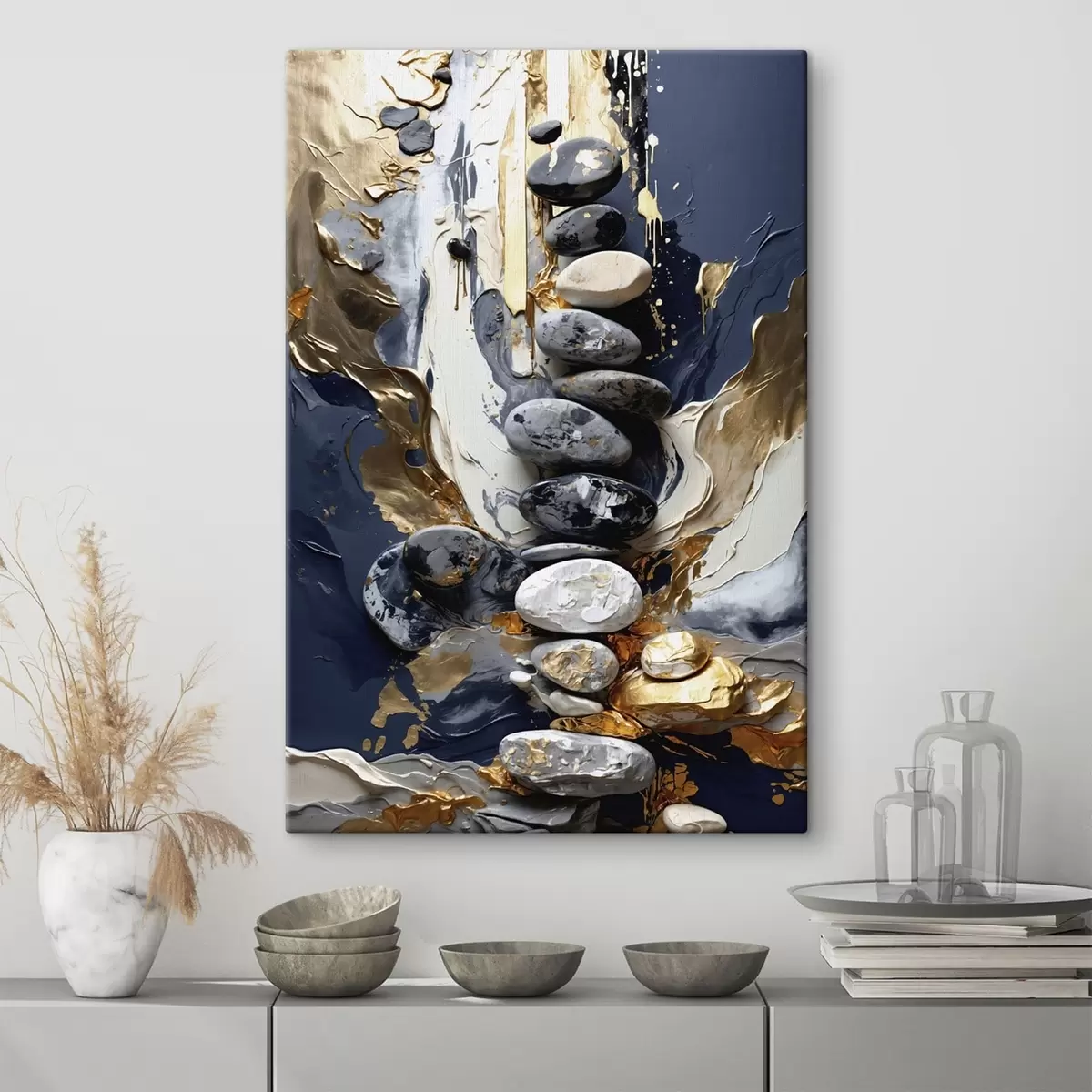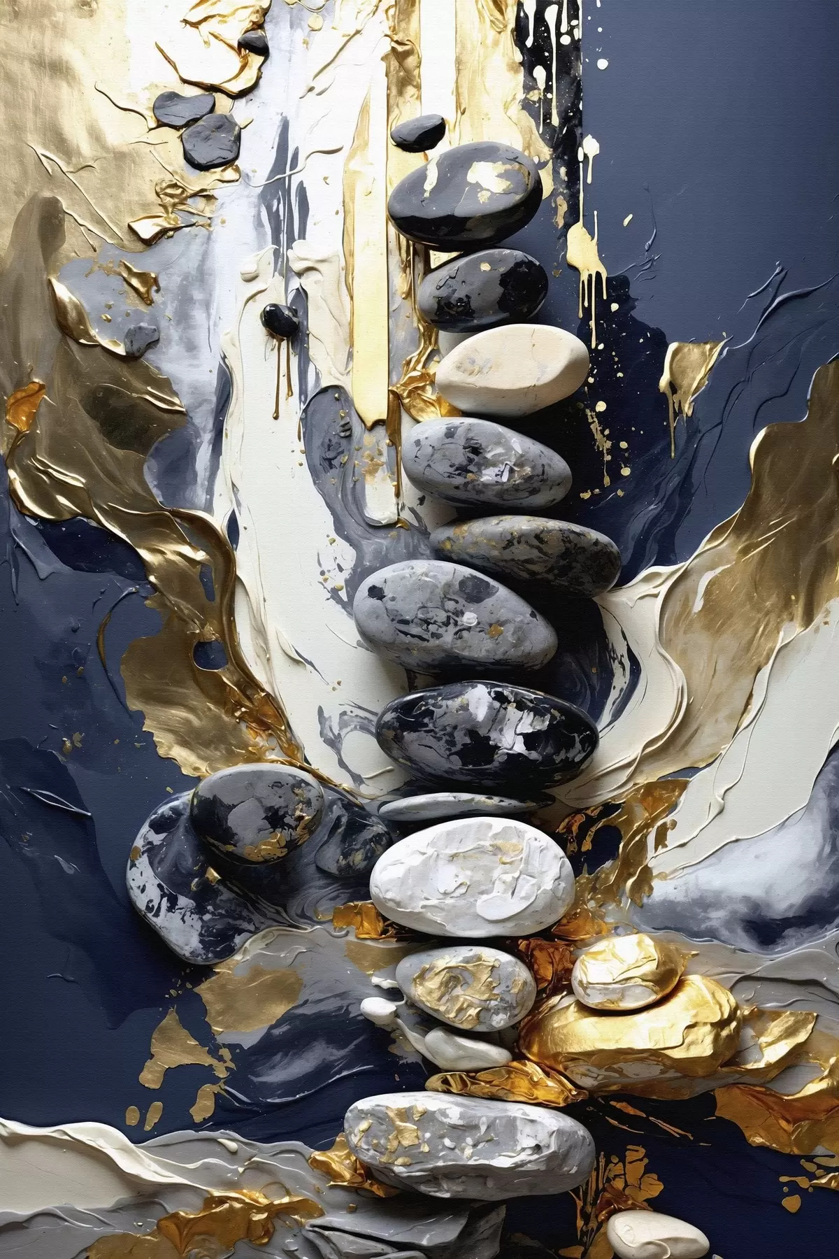 Quadri Composizione astratta con pietre e pennellate materiche Nr s48362