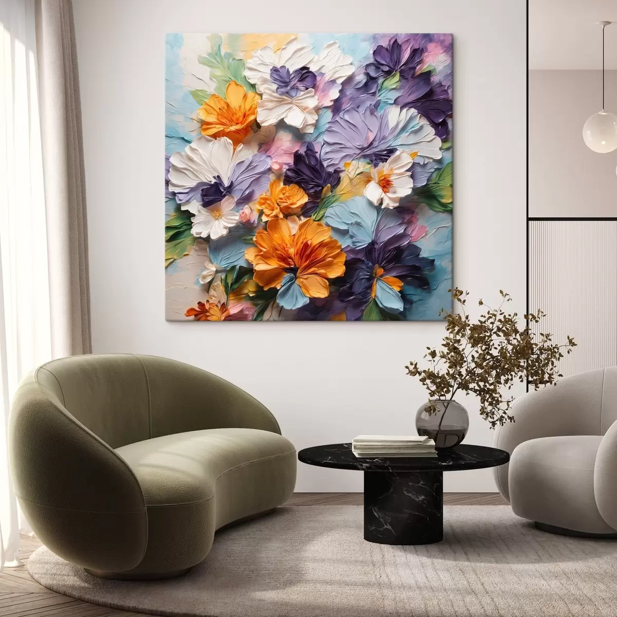 Quadri Fiori dai colori vivaci e dalla trama ricca su uno sfondo pastello Nr s48363
