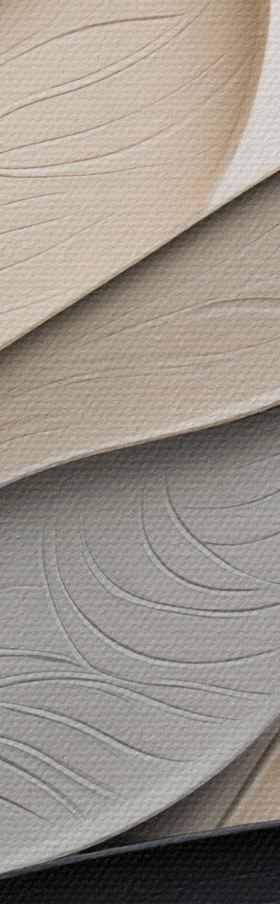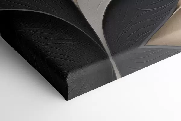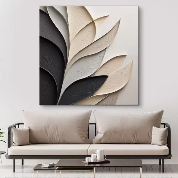 Quadri Composizione astratta di foglie sovrapposte, forme sinuose in nero, bianco e beige, opera d'arte materica Nr s48382