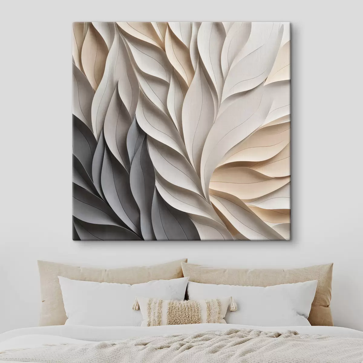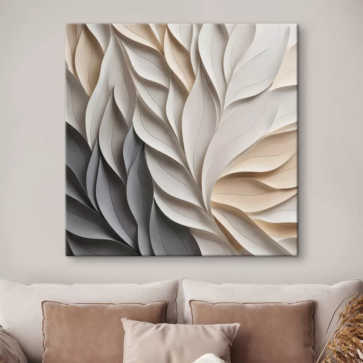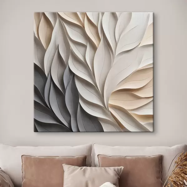 Quadri Una composizione astratta di foglie sovrapposte con texture, nei toni neutri del beige, del crema e del grigio Nr s48407