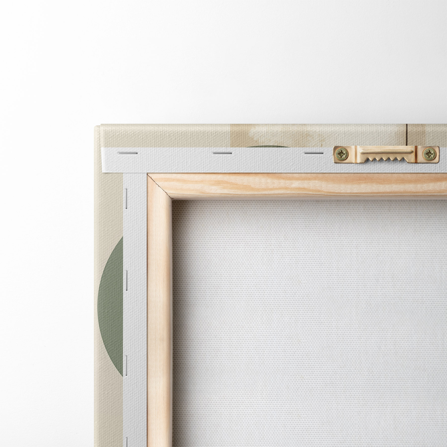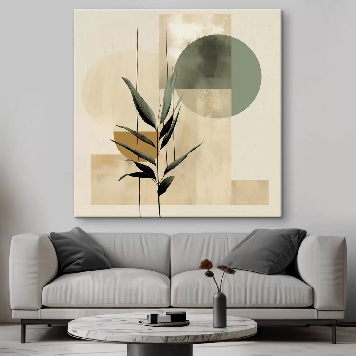 Quadri Una pianta di colore verde scuro con forme geometriche astratte e texture acquerellate nei toni del beige e del verde Nr s48409