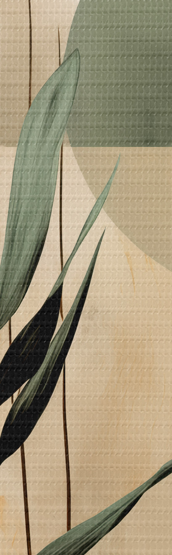 carta da parati Una pianta di colore verde scuro con forme geometriche astratte e texture acquerellate nei toni del beige e del verde nr. s48409