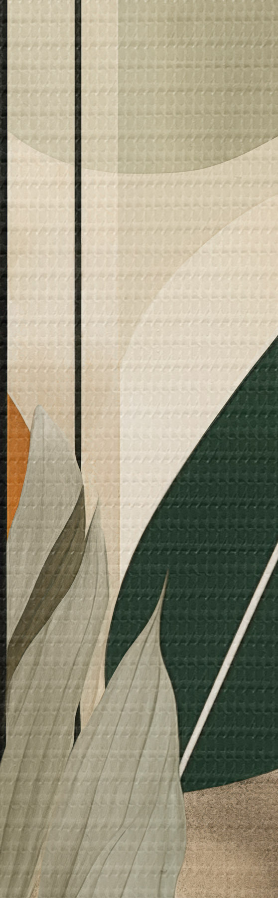 carta da parati Una pianta di colore verde scuro con forme geometriche astratte e texture acquerellate nei toni del beige e del verde nr. s48410