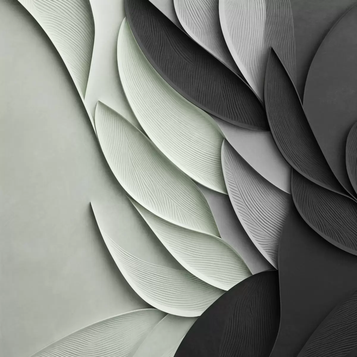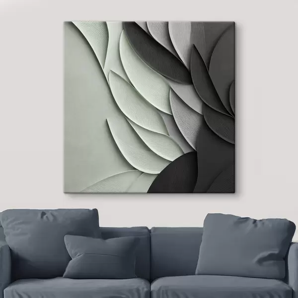 Quadri Foglie stilizzate in tonalità di grigio, bianco e verde tenue Nr s48412