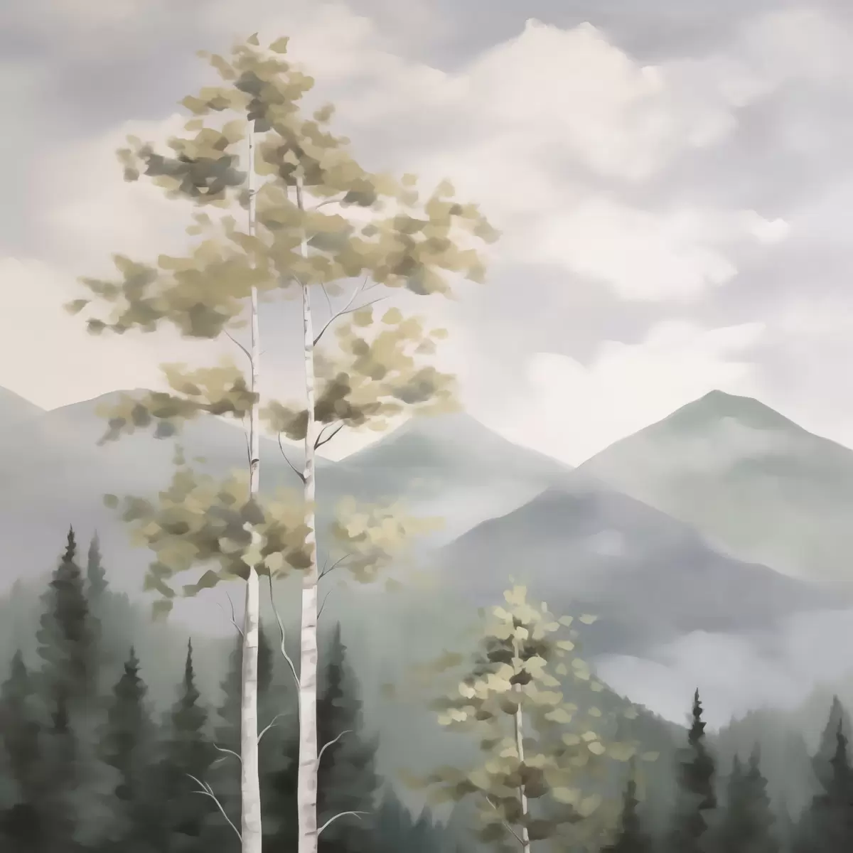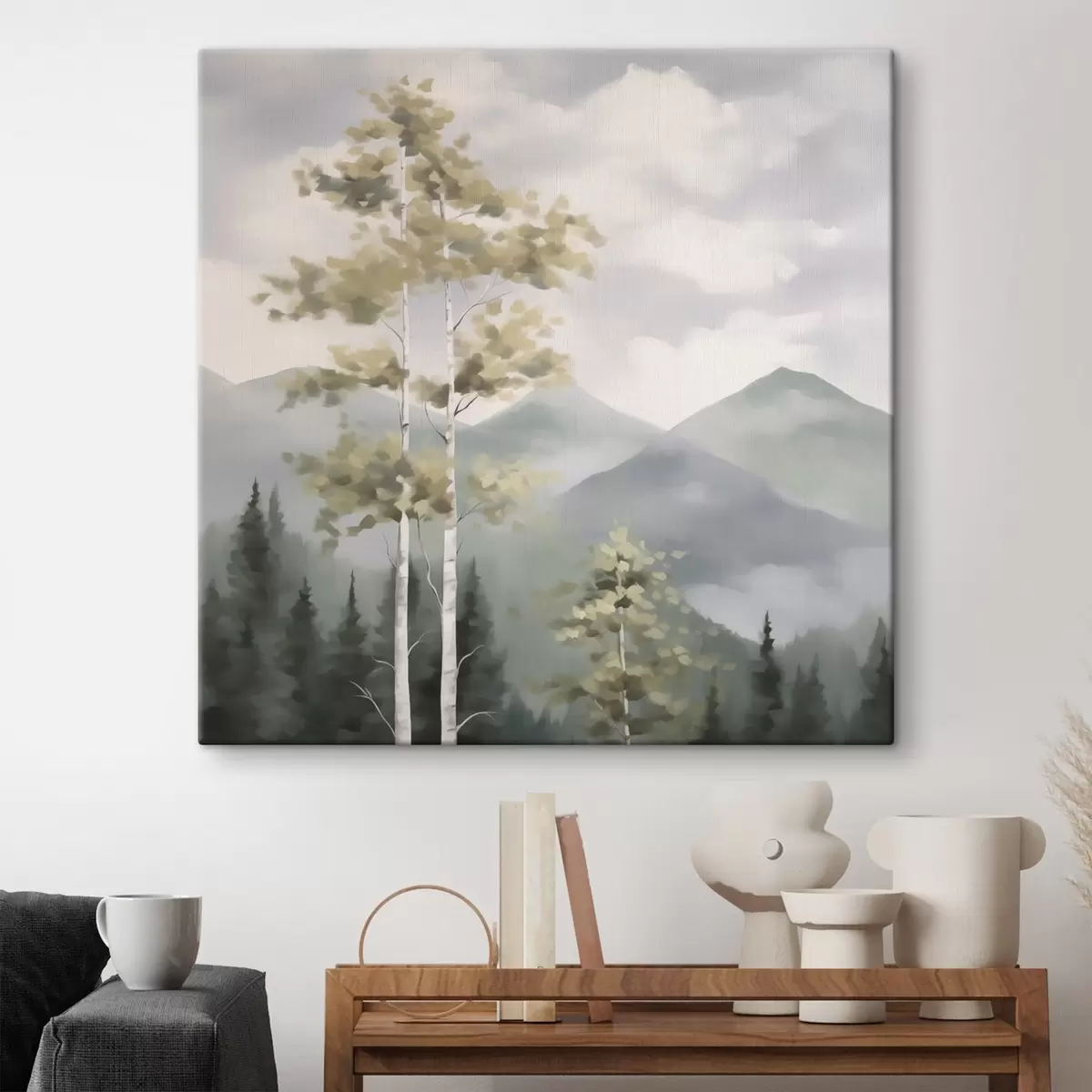 Quadri Alberi sullo sfondo delle montagne, imitazione di un dipinto Nr s48421