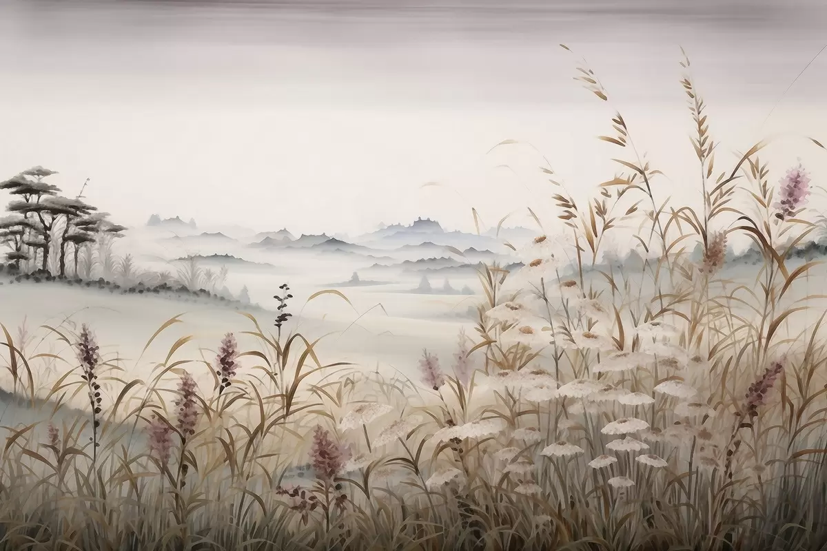 carta da parati Paesaggio nebbioso con erba nr. s48481