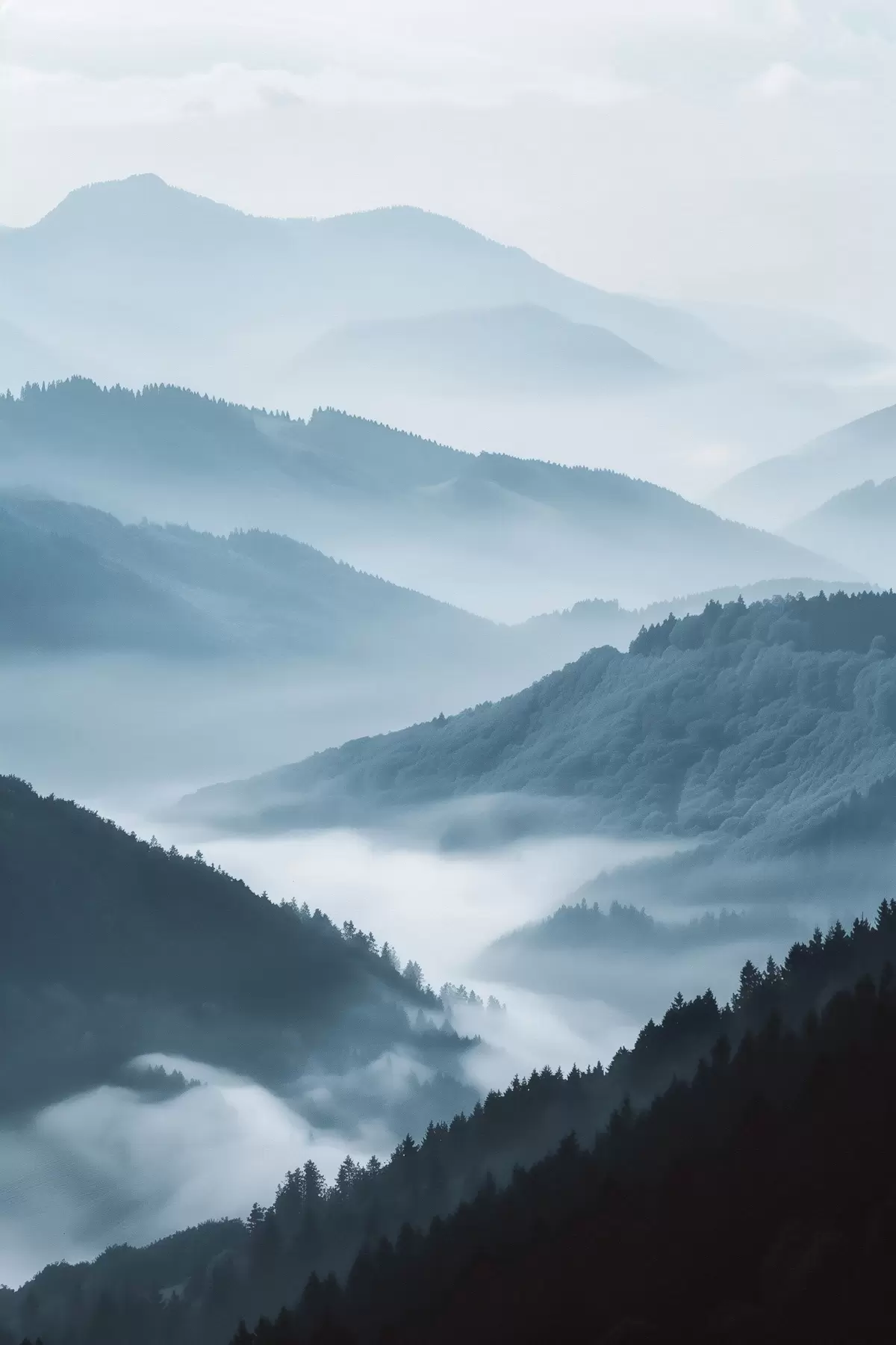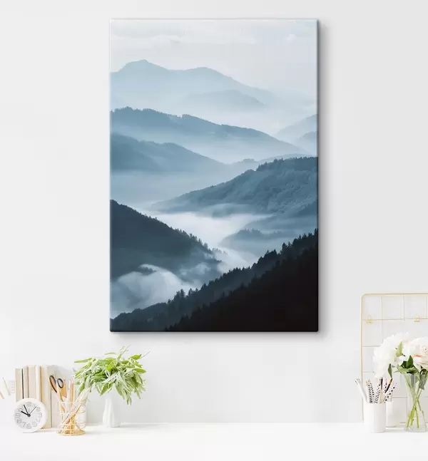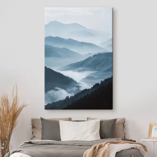 Quadri Montagne avvolte nella nebbia, paesaggio blu Nr s48567
