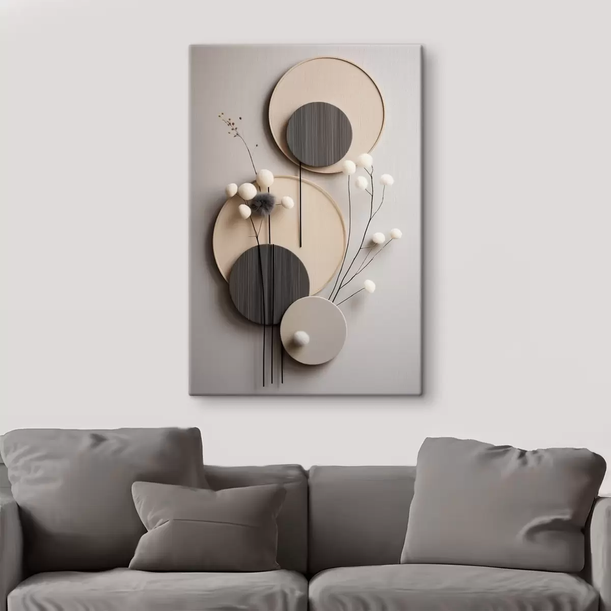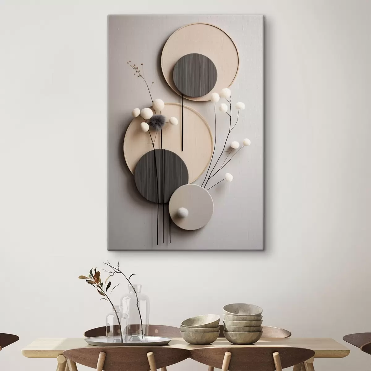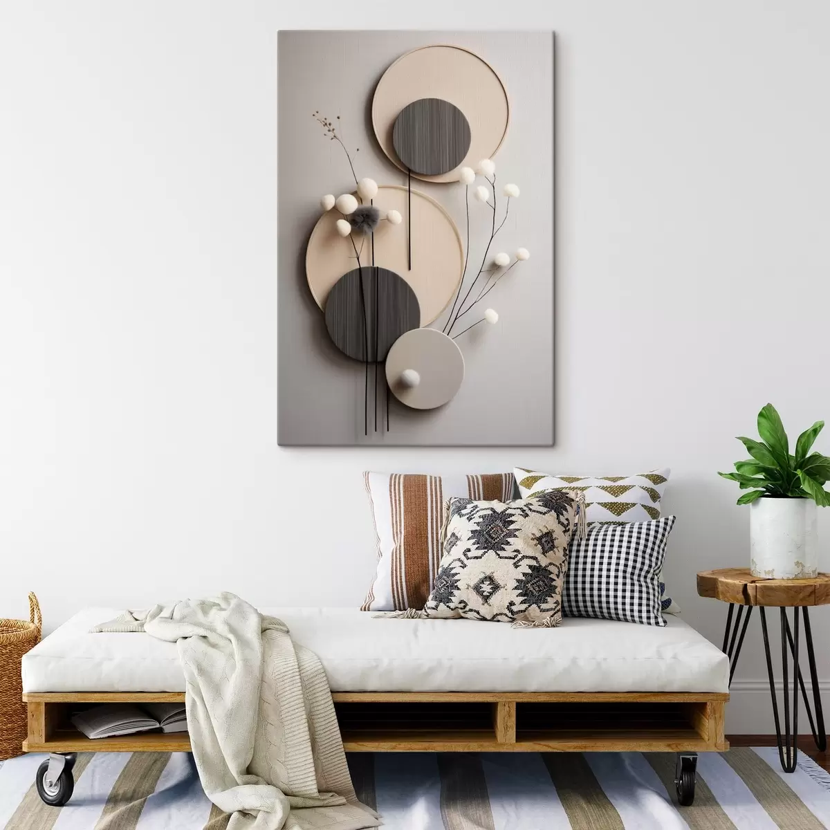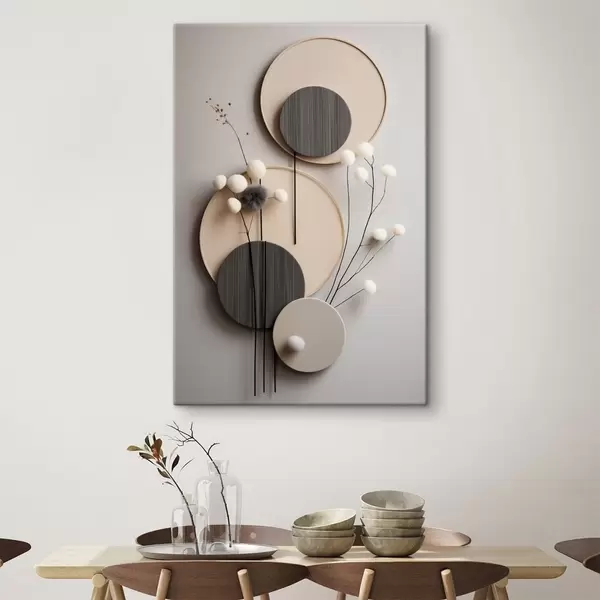 Quadri Pannelli rotondi con rametti secchi e palline morbide Nr s48601