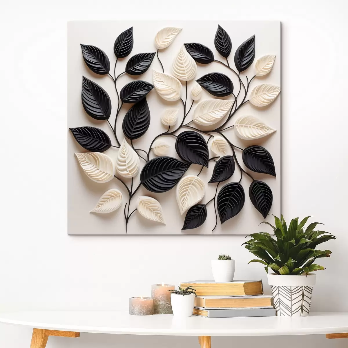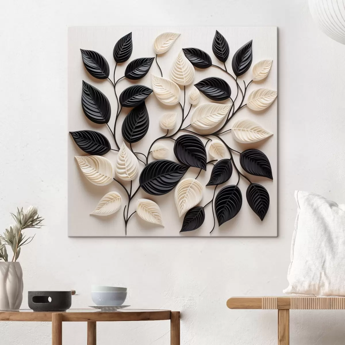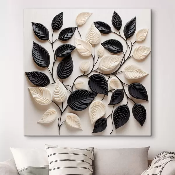 Quadri Composizione di foglie nere e chiare sui rami Nr s48606