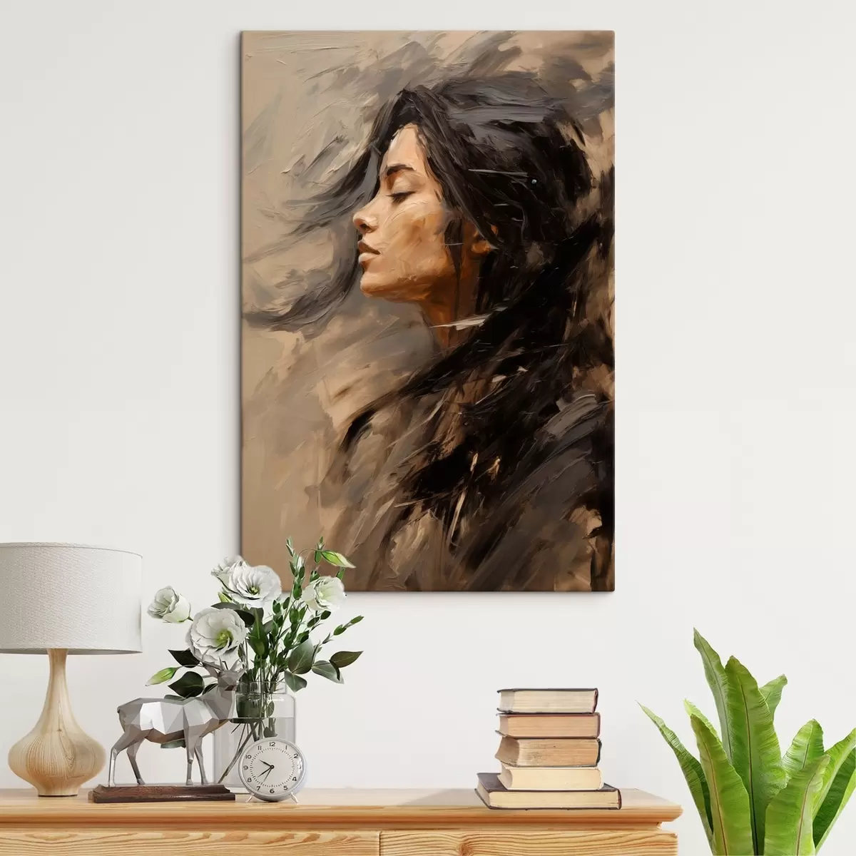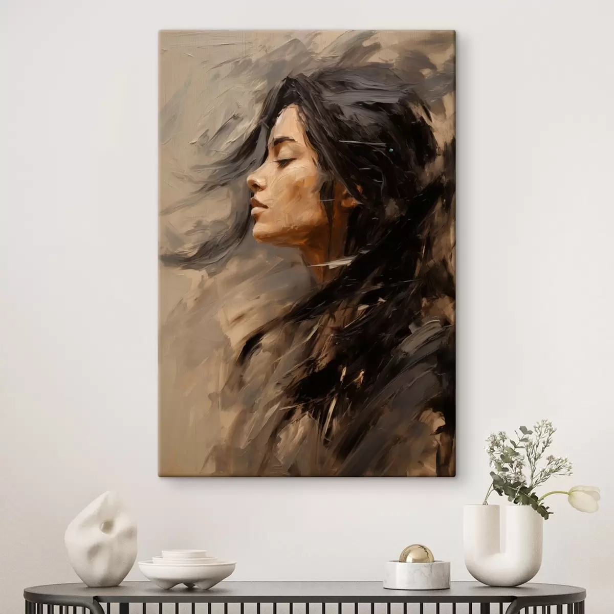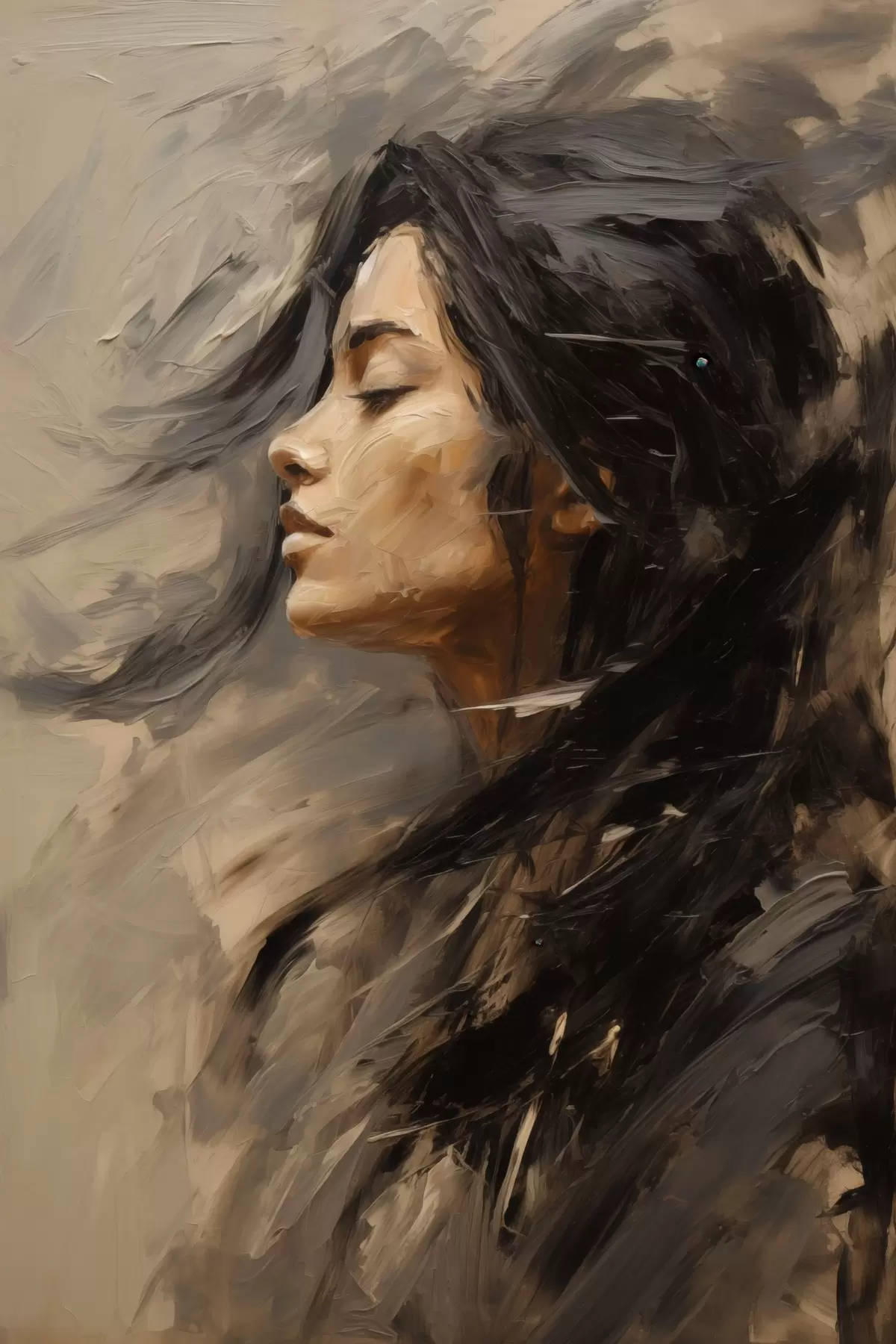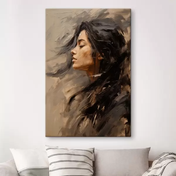 Quadri Profilo femminile realizzato con pennellate pittoriche, in tonalità calde Nr s48621