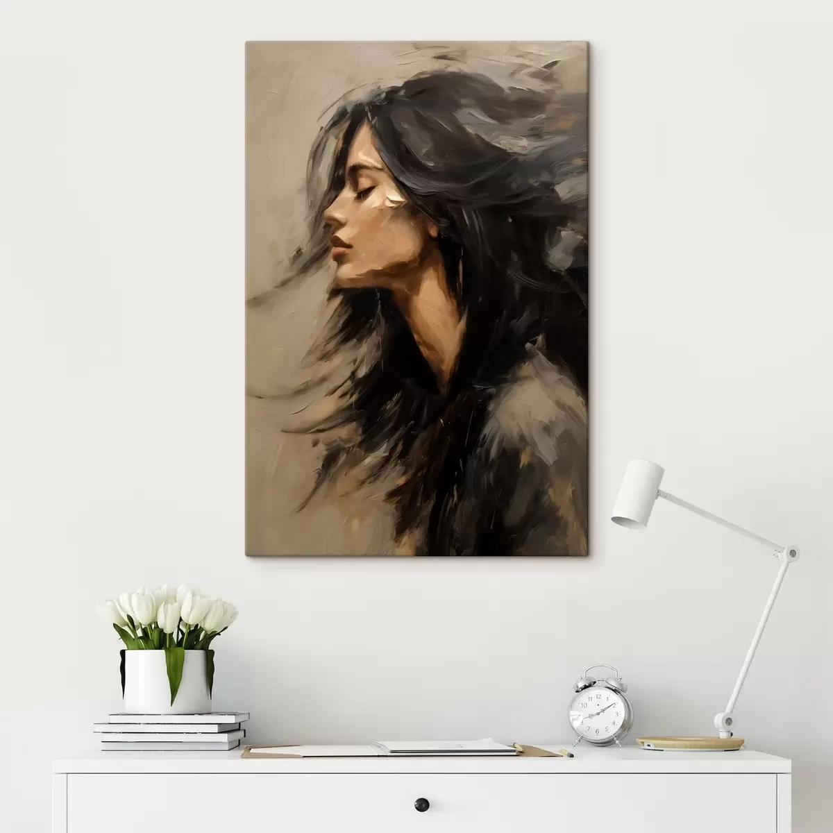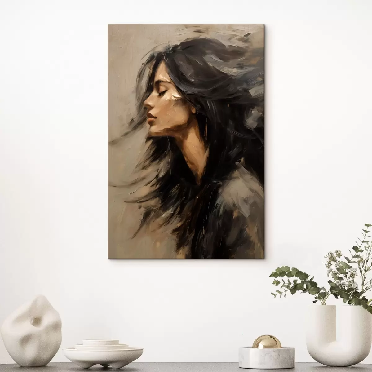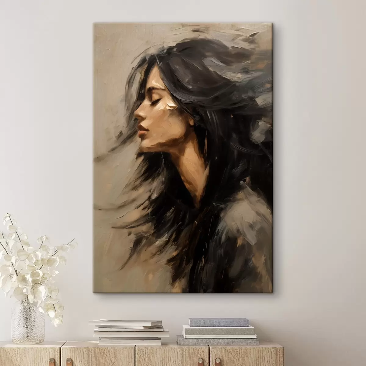 Quadri Ritratto di donna con capelli sciolti in stile pittorico Nr s48622