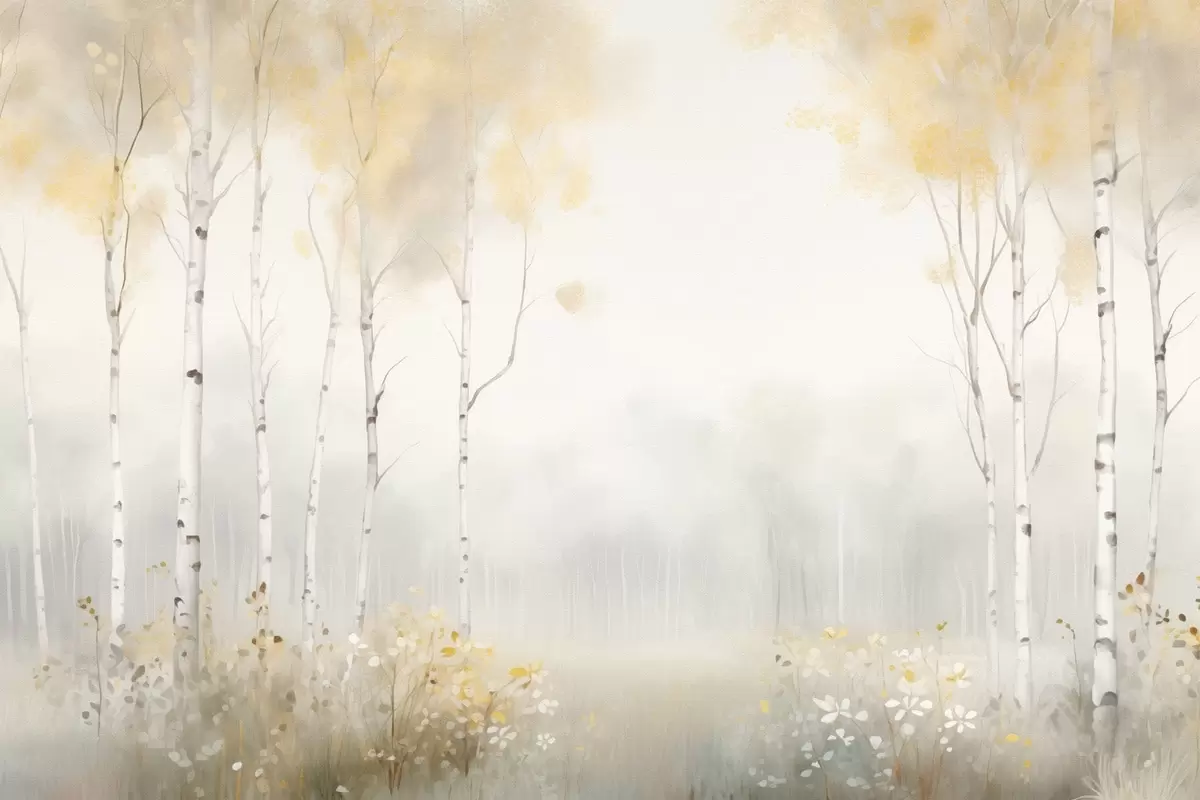 carta da parati Foresta di alberi slanciati nella nebbia, con tenui tonalità di luce nr. s48623