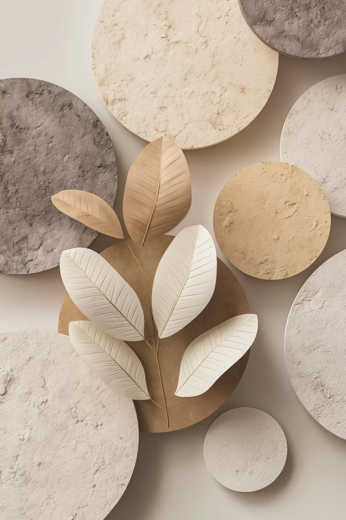 carta da parati Una composizione con foglie e cerchi nr. s48691
