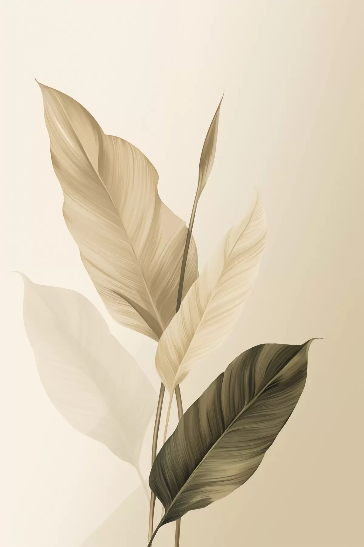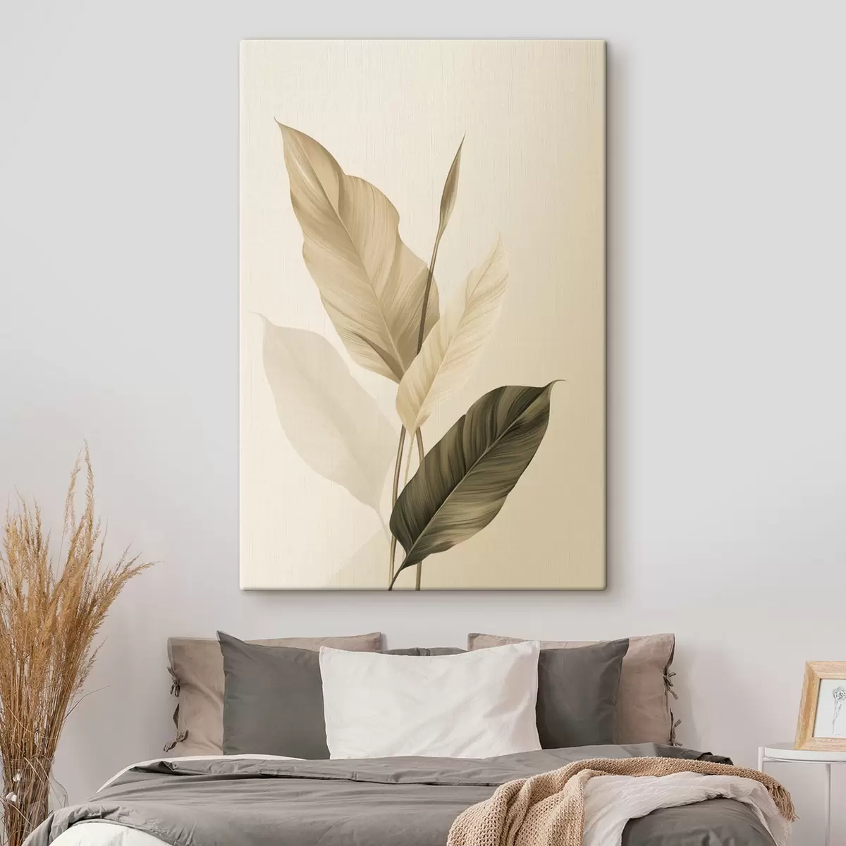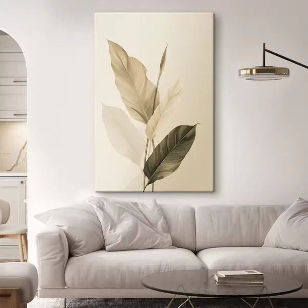 Quadri Grandi foglie tropicali nei toni del beige e del marrone, su uno sfondo chiaro Nr s48725