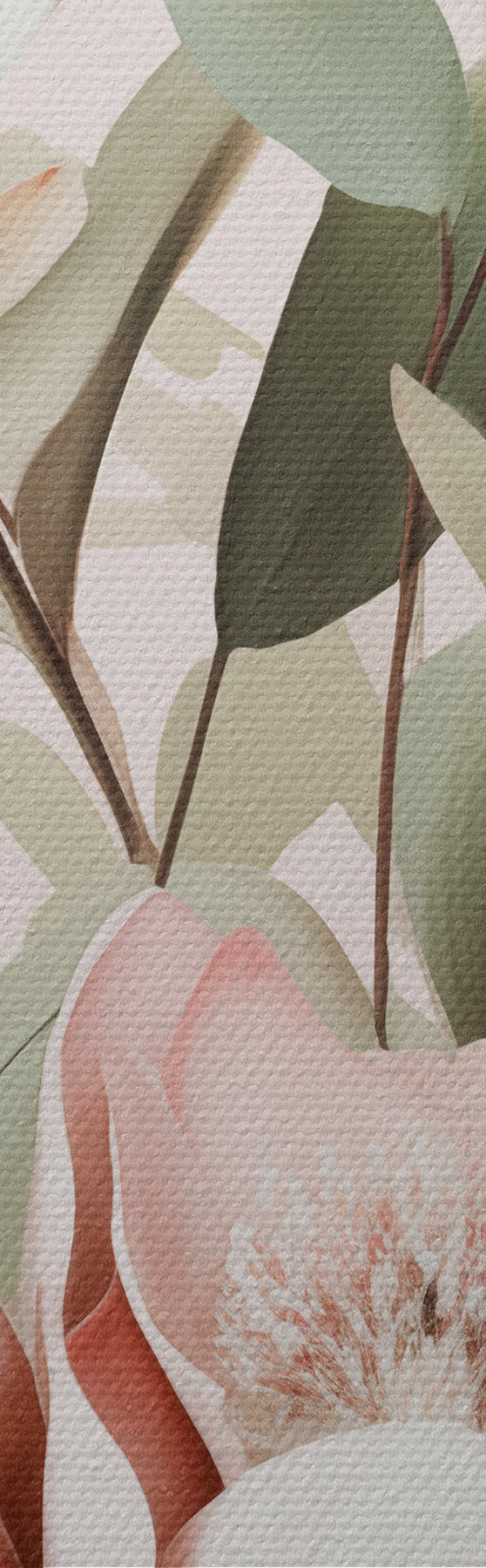 carta da parati Un bouquet di fiori dai colori pastello con foglie di eucalipto, su uno sfondo rosa pallido nr. s48727