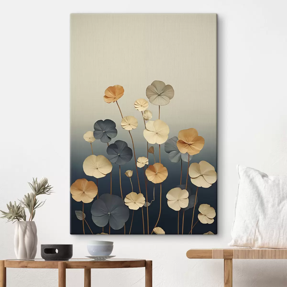 Quadri Foglie di ninfea su uno sfondo tenue nei toni del beige e del blu scuro Nr s48733