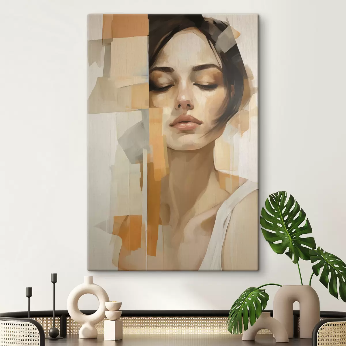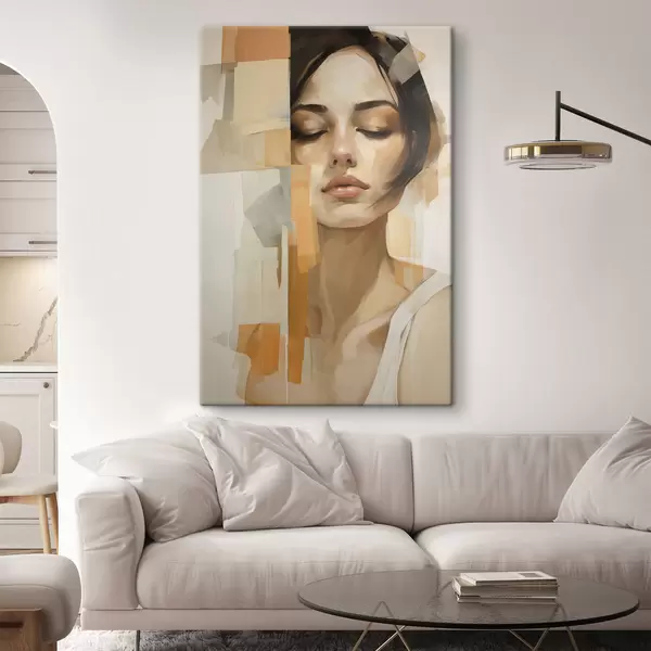 Quadri Ritratto astratto di una donna con forme arancioni e beige Nr s48736
