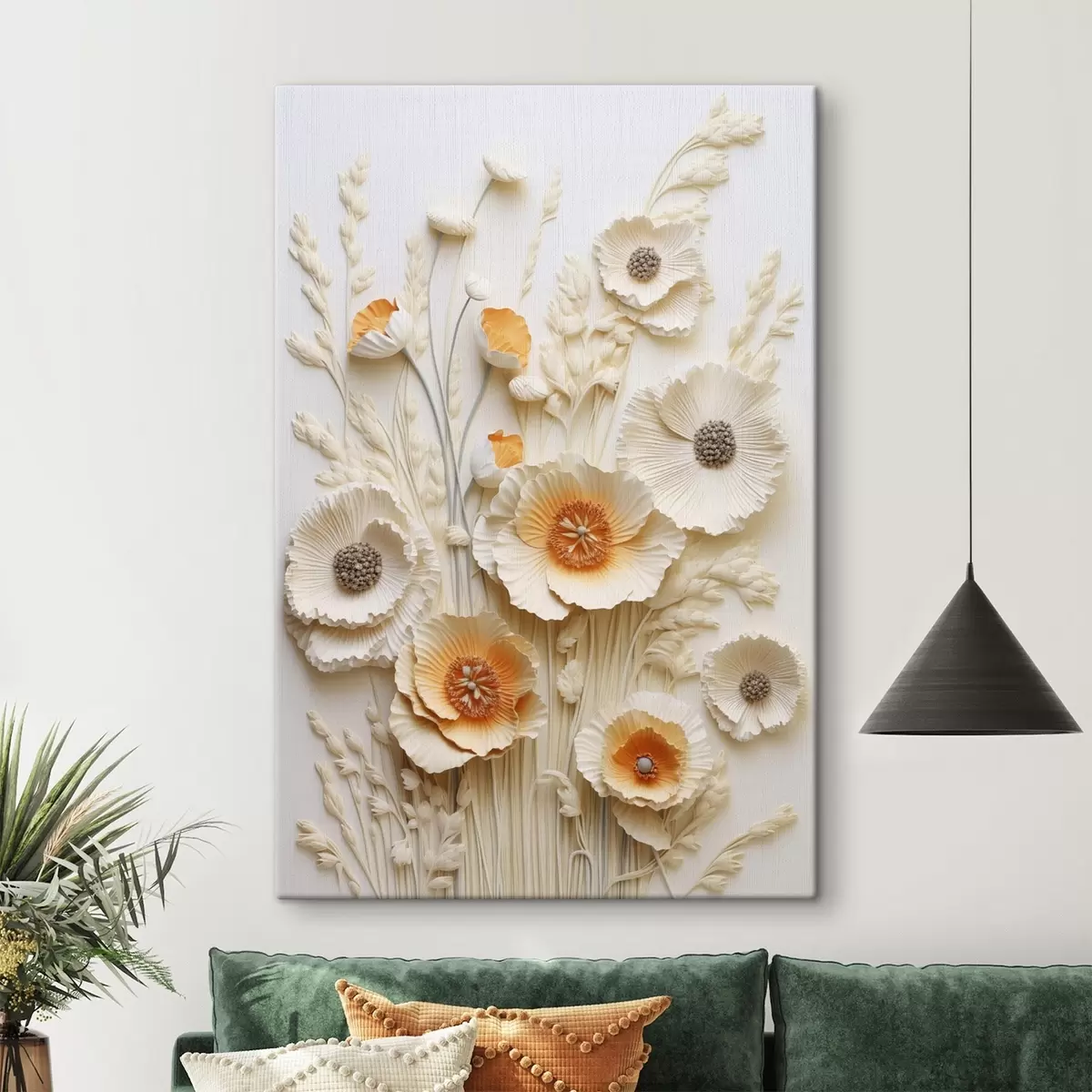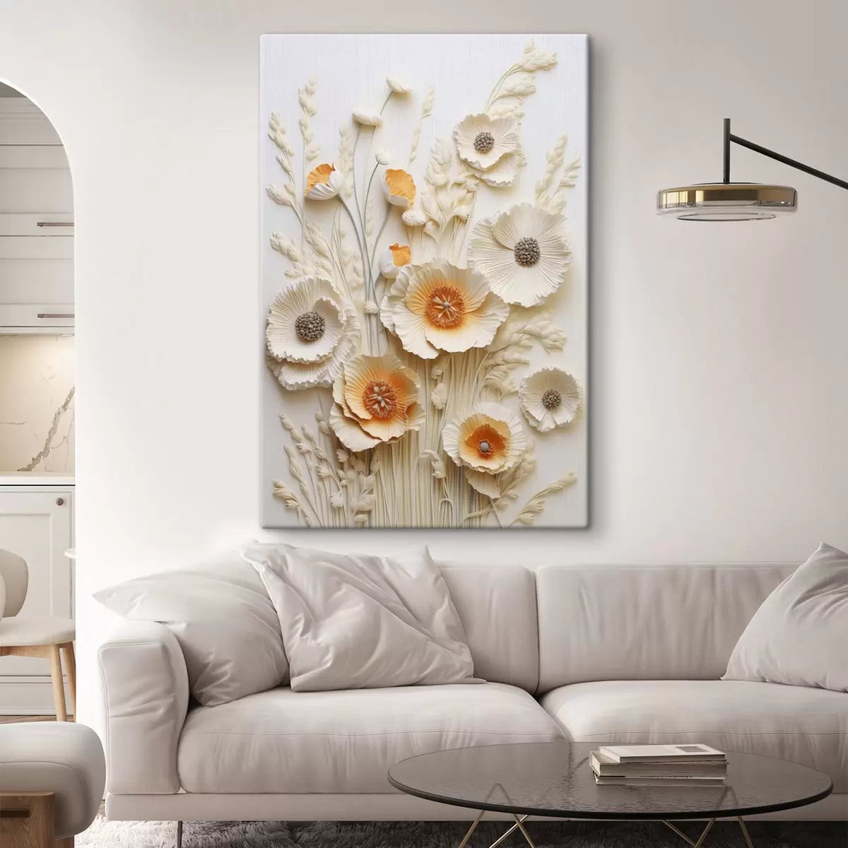 Quadri Un bouquet di papaveri color crema e arancione con steli di grano essiccato Nr s48747