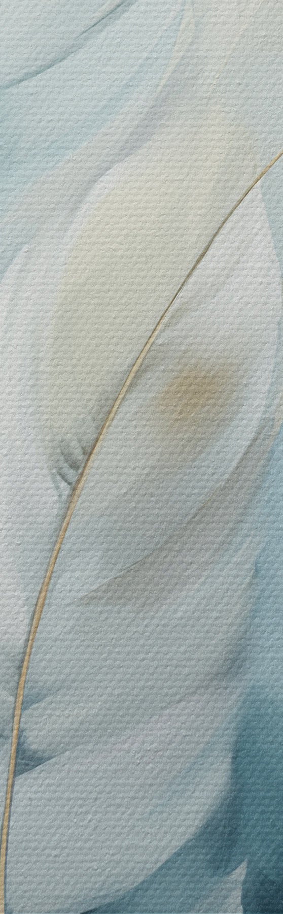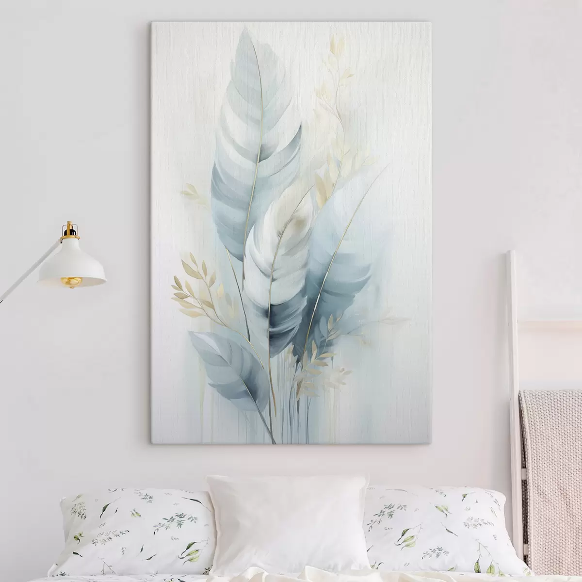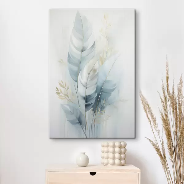 Quadri Grandi piume morbide nei toni del blu e del bianco con delicate foglie color beige Nr s48749