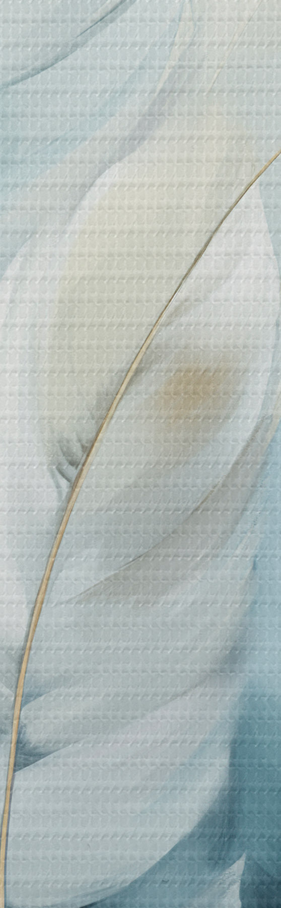 carta da parati Grandi piume morbide nei toni del blu e del bianco con delicate foglie color beige nr. s48749