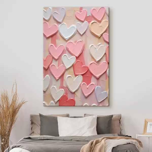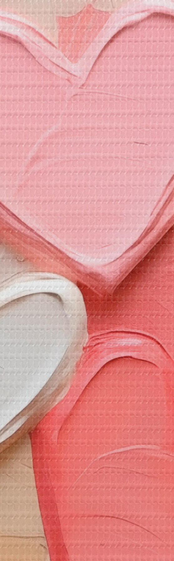 Quadri Cuori in varie tonalità di pesca e rosa, realizzati con una tecnica pittorica a texture Nr s48751