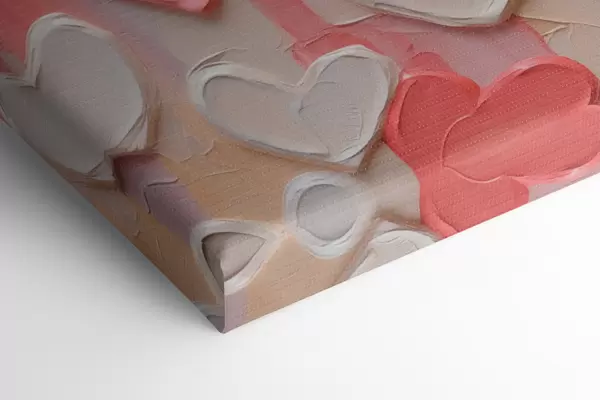 Quadri Cuori in varie tonalità di pesca e rosa, realizzati con una tecnica pittorica a texture Nr s48751