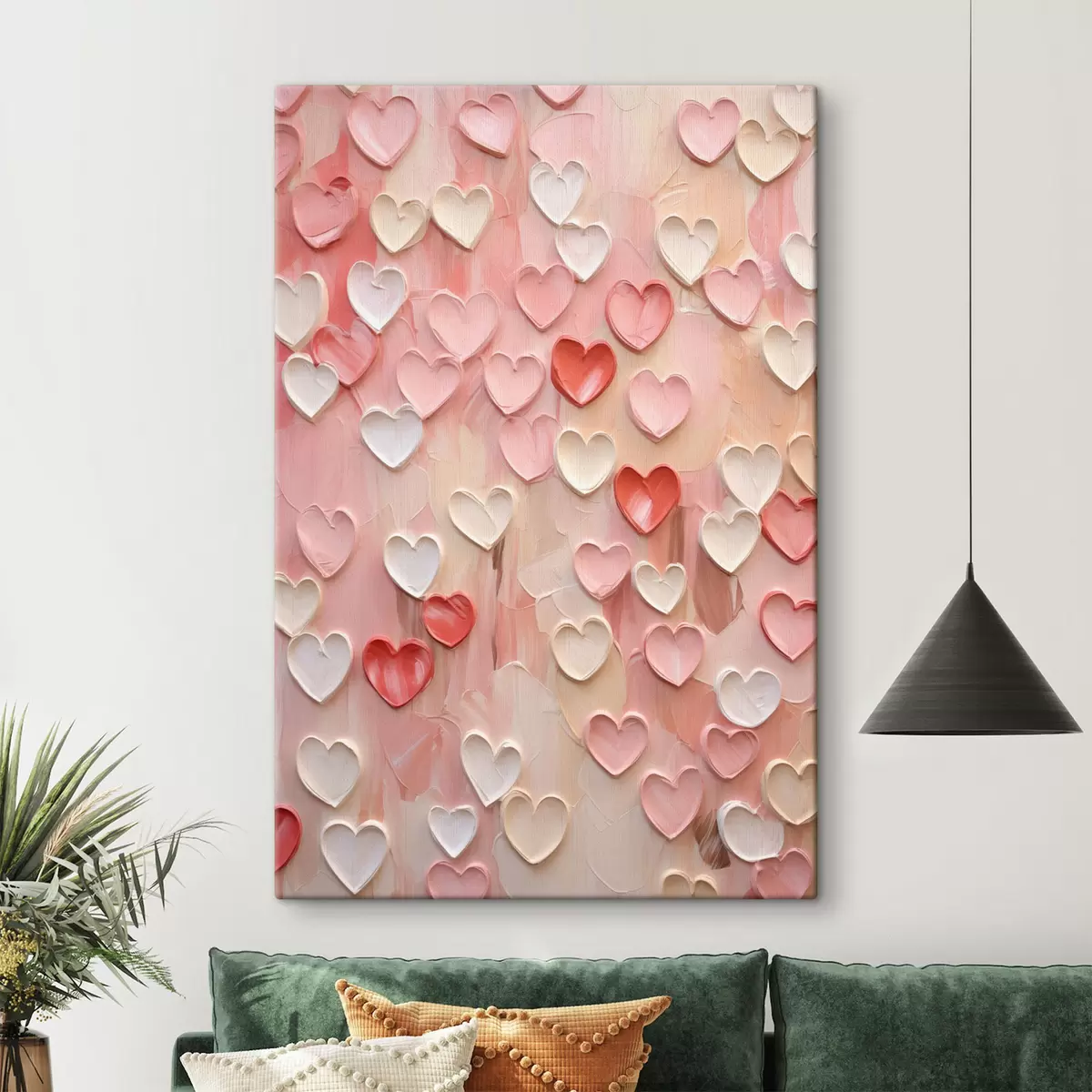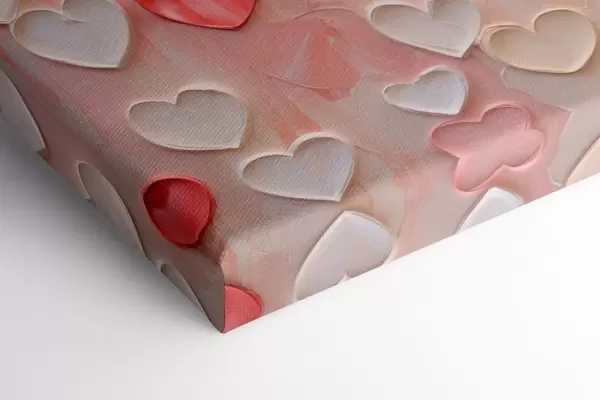Quadri Cuori in varie tonalità di pesca e rosa, realizzati con una tecnica pittorica a texture Nr s48752
