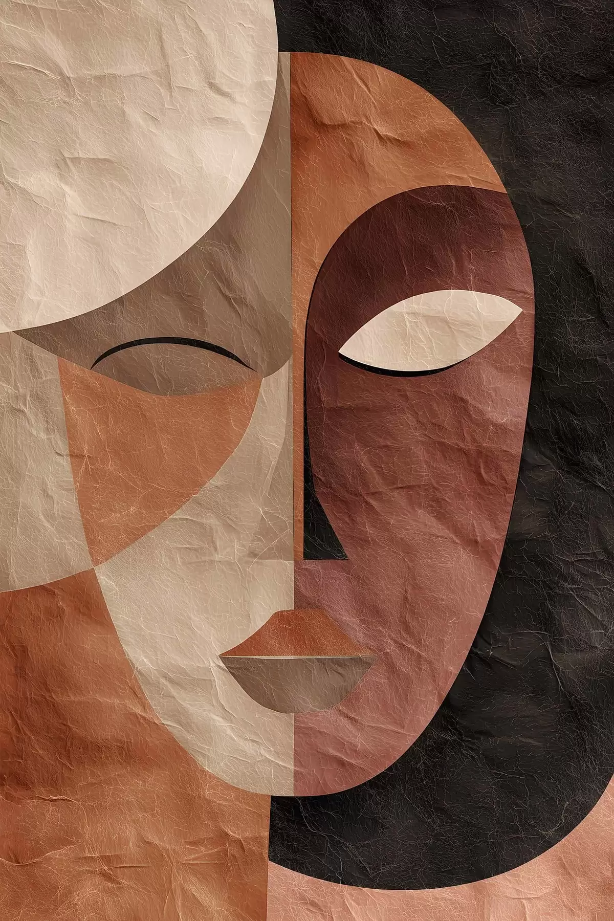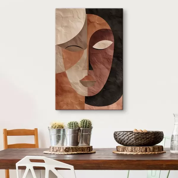 Quadri un volto astratto dai toni del caffè Nr s48778