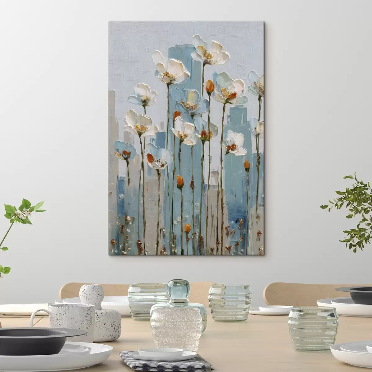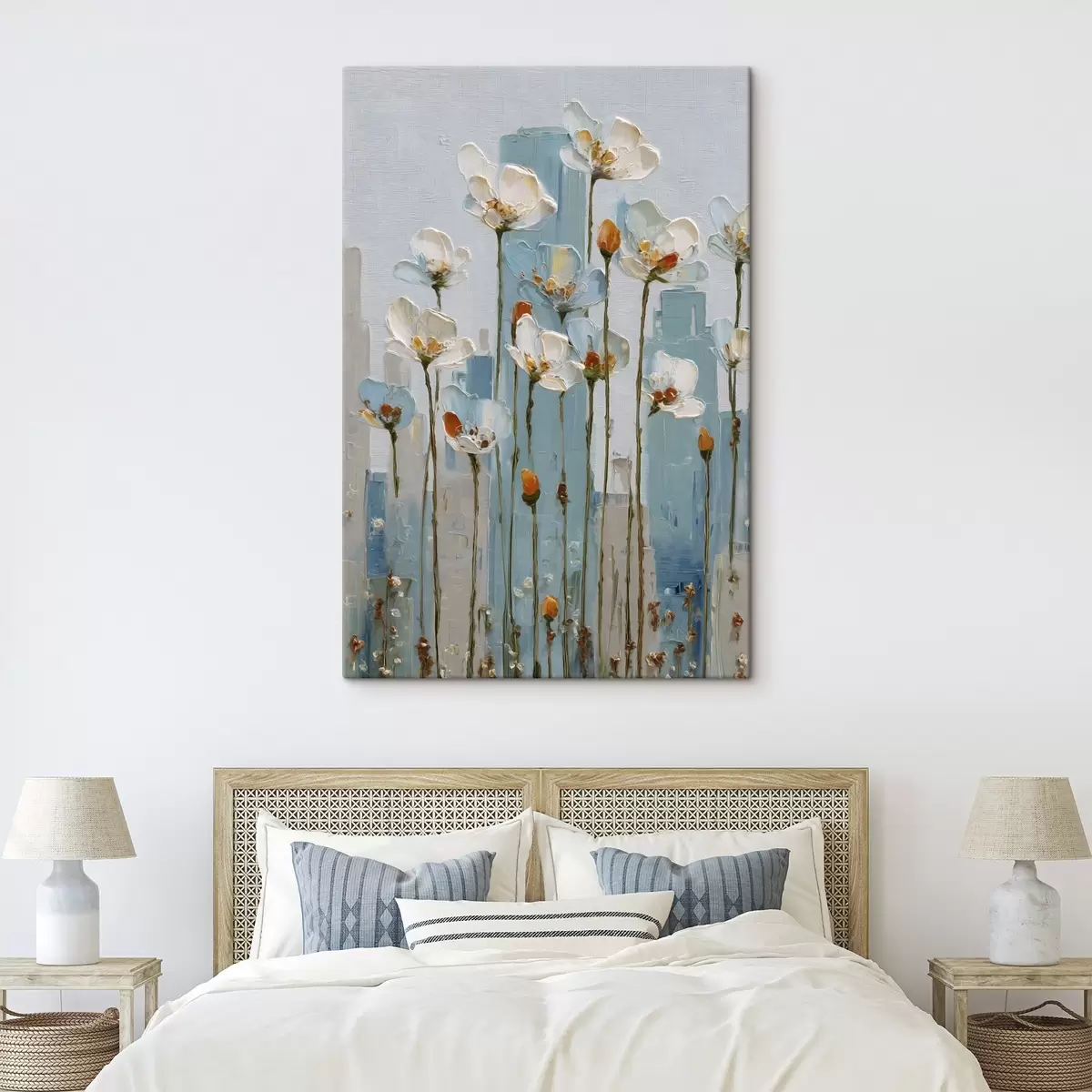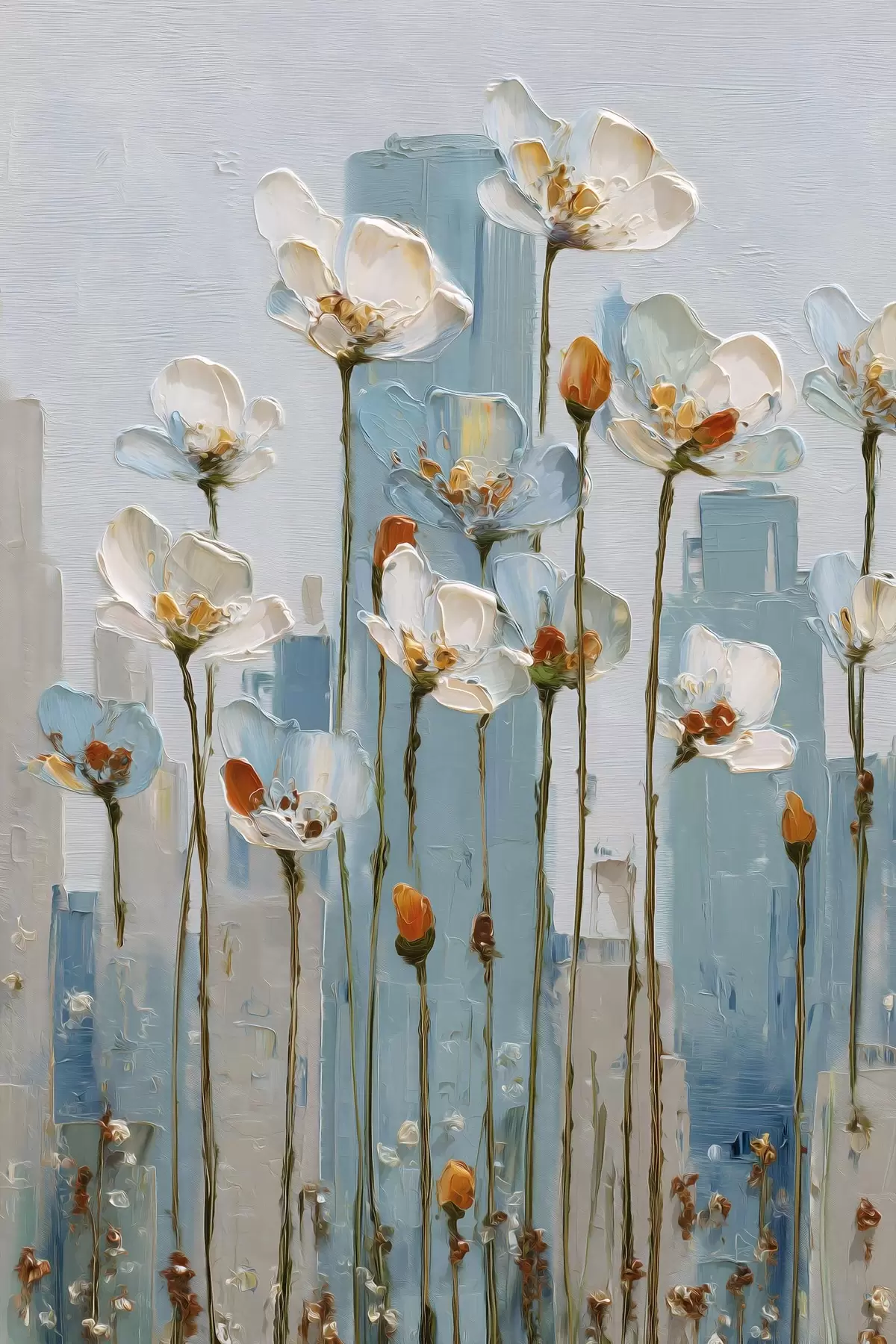 Quadri fiori sullo sfondo della città, in stile pittura a olio Nr s48785
