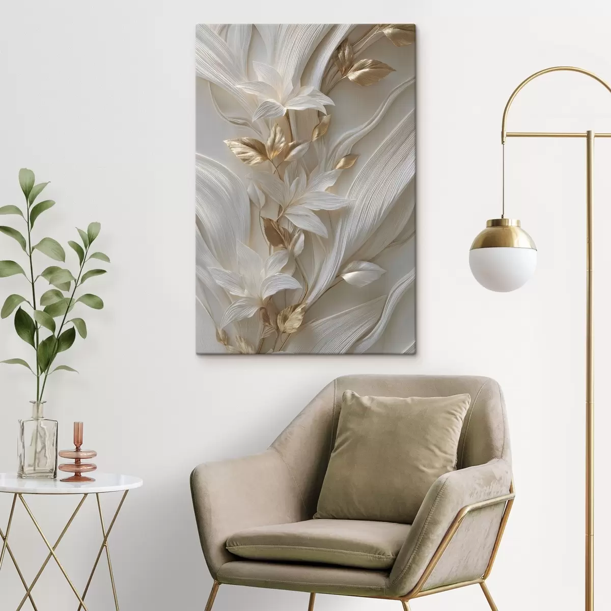 Quadri una raffinata riproduzione di foglie, trame e fiori tridimensionali Nr s48788