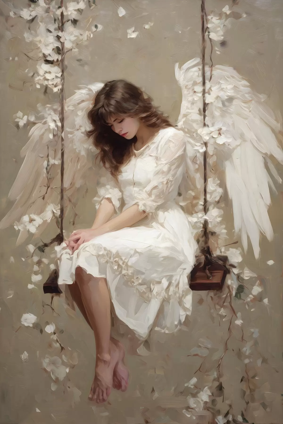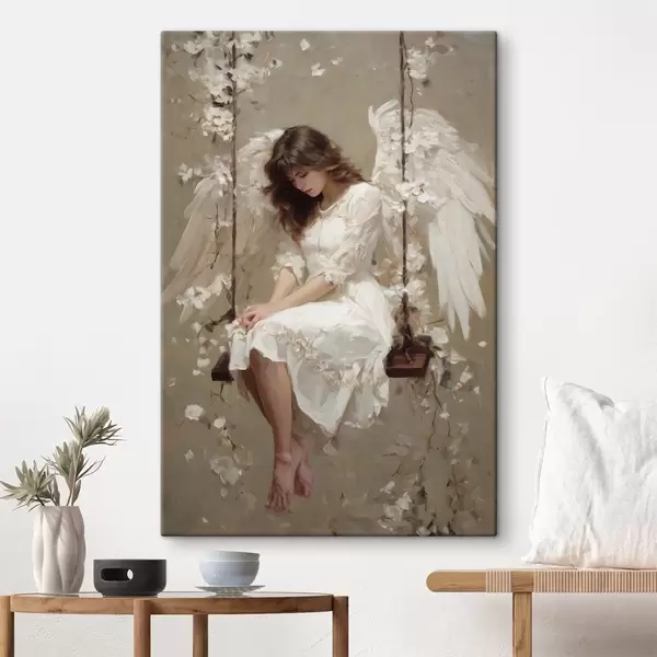 carta da parati una bambina angelica su un'altalena, dipinta in stile ad olio nr. s48789