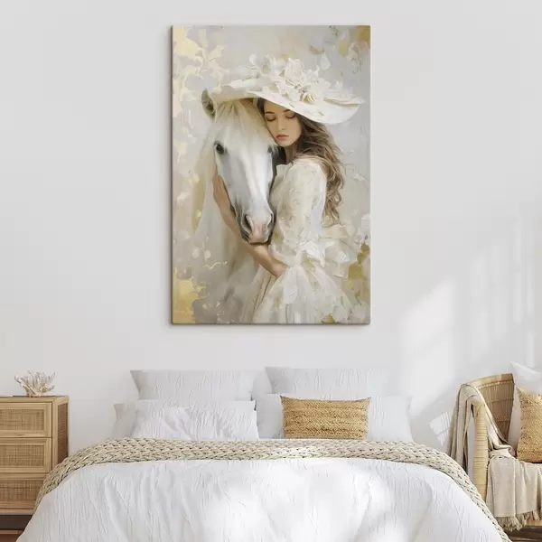 Quadri una ragazza con un cavallo bianco, dipinta in stile oil painting Nr s48790