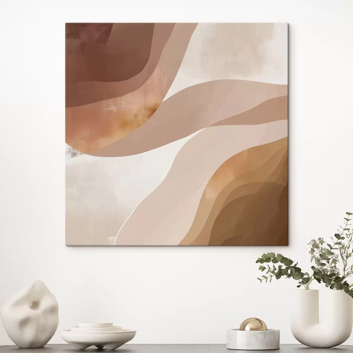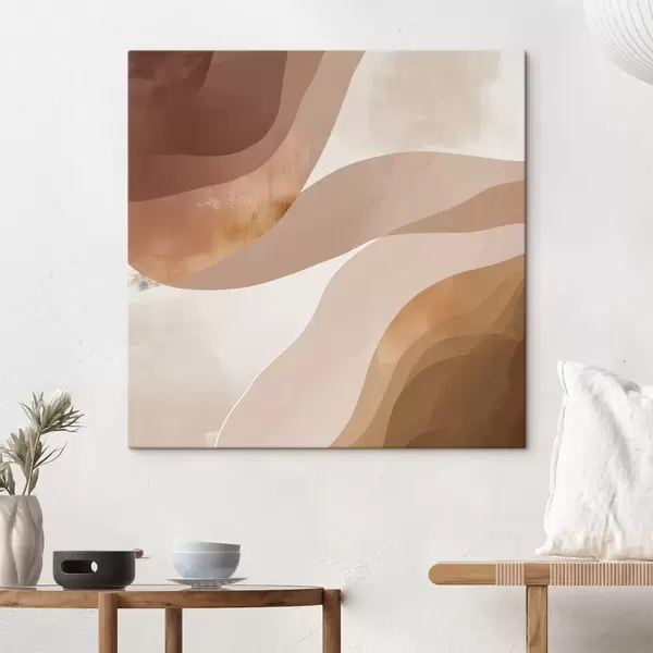 Quadri Forme astratte ondulate in una palette di colori beige-caffè Nr s48836