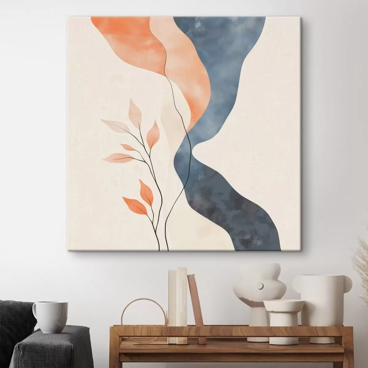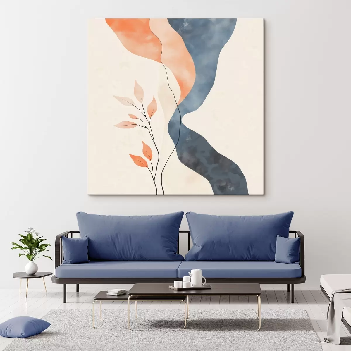 Quadri Composizione floreale dalle linee sinuose in una palette di colori blu e arancione Nr s48837