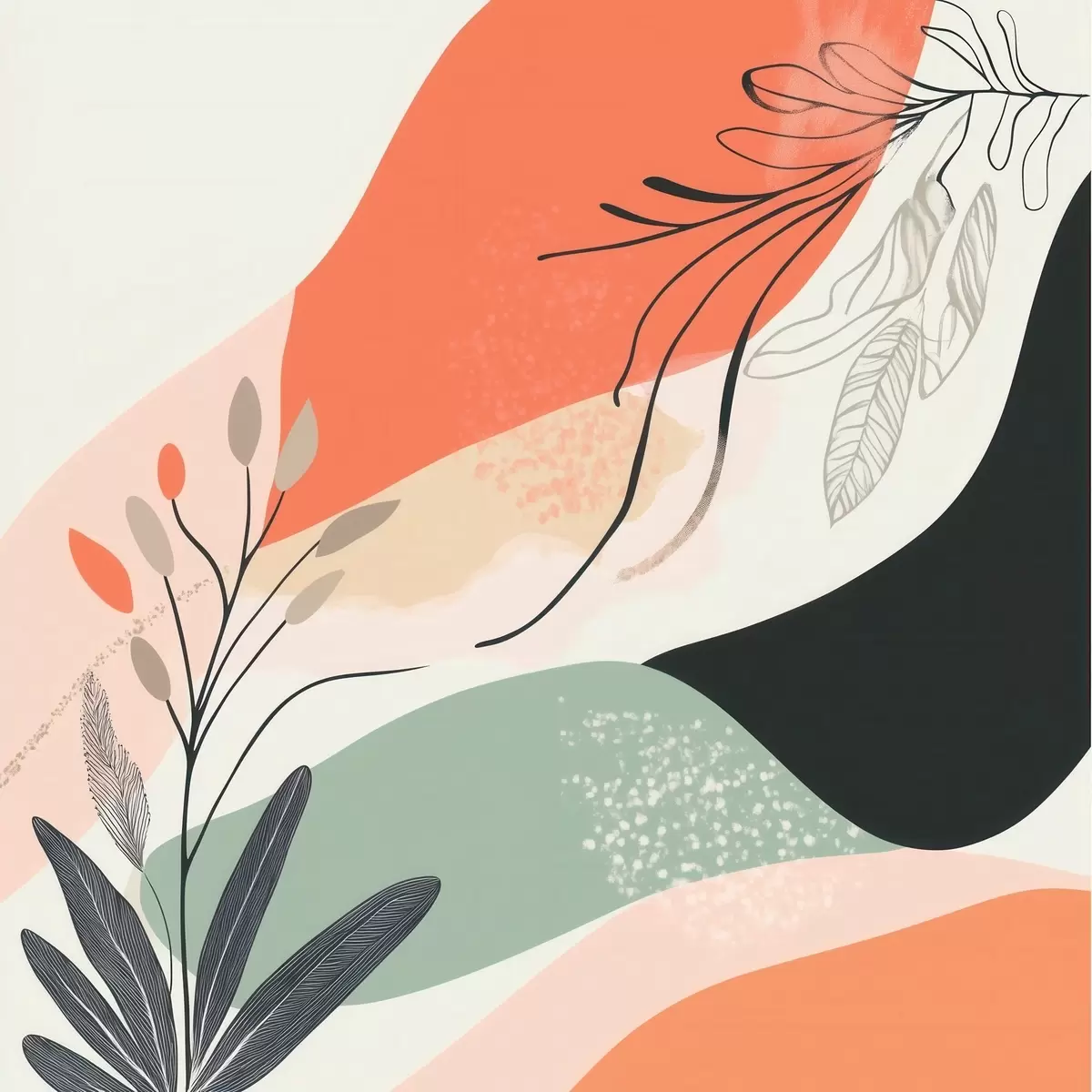 Quadri Motivi vegetali stilizzati su uno sfondo di macchie acquerellate Nr s48839