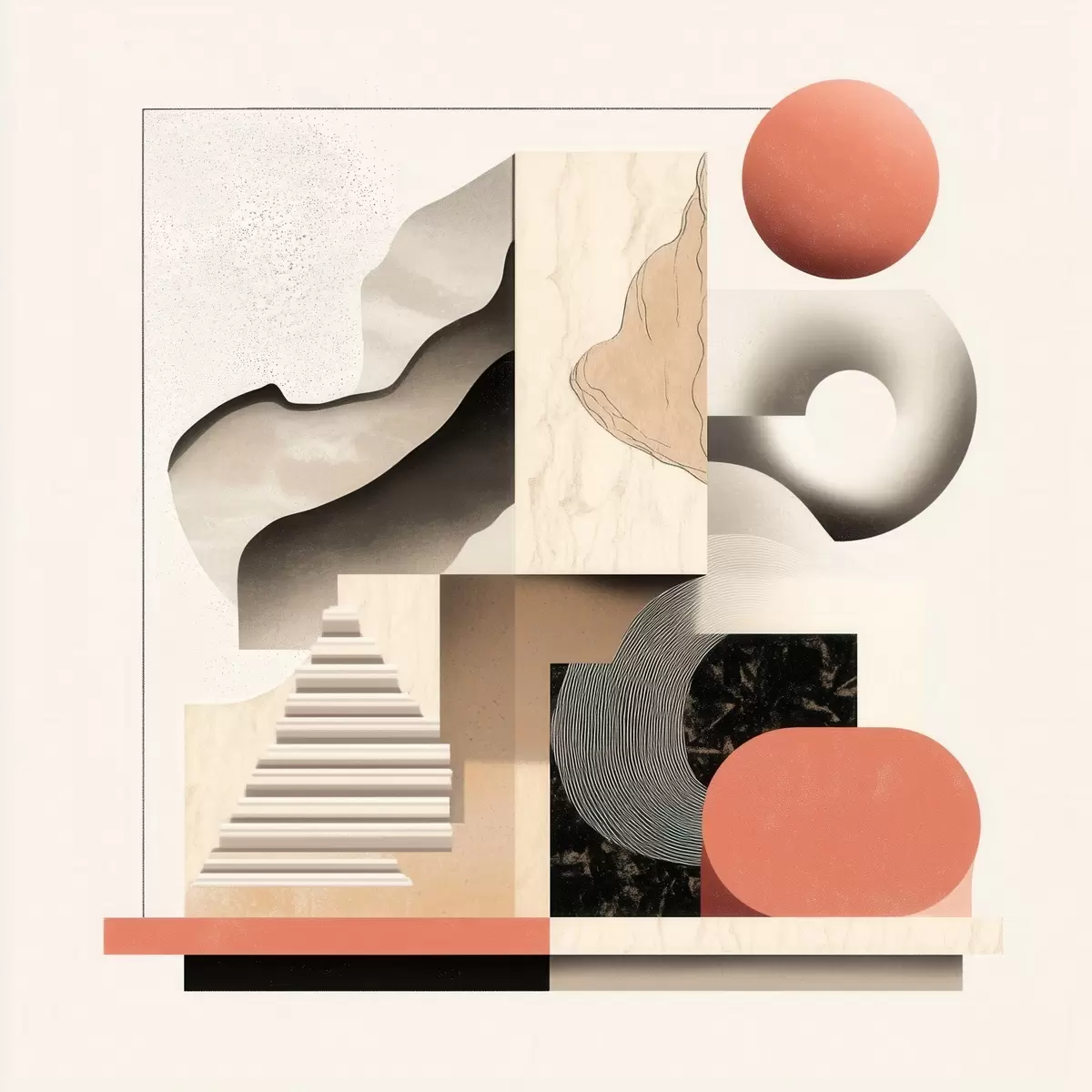 Quadri Forme astratte in una palette di colori beige-grigio, in uno stile pittorico contemporaneo Nr s48842