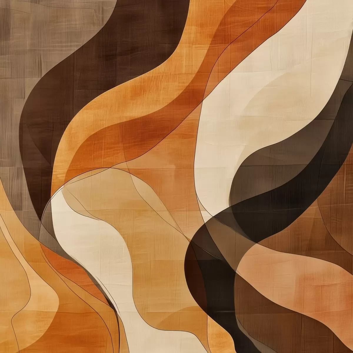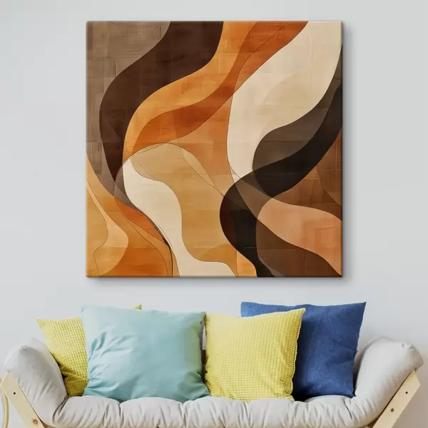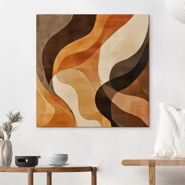 Quadri Composizione astratta con linee ondulate dinamiche in una palette di colori terra cotta Nr s48851