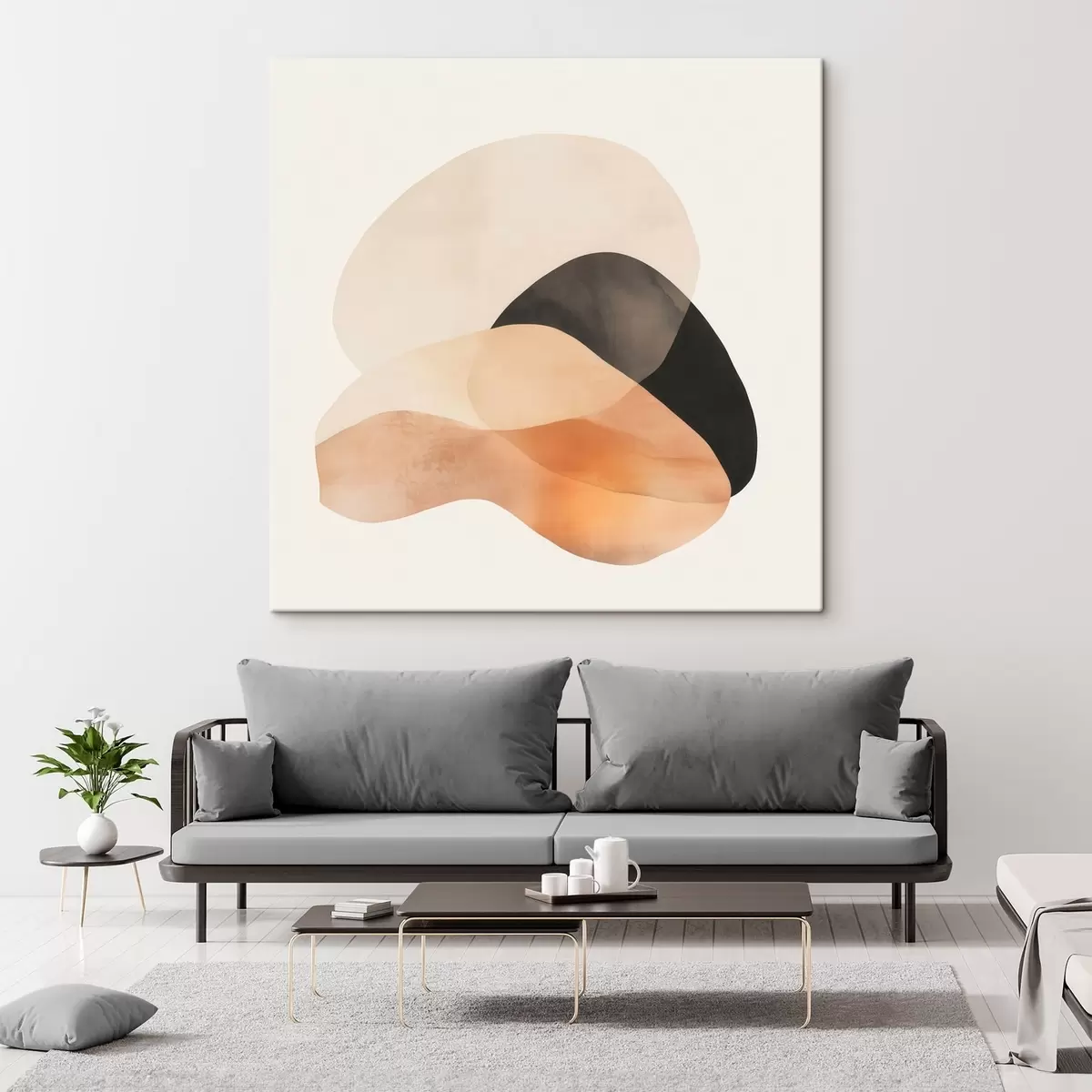 Quadri Forme astratte in una palette di colori beige-pesca con accenti scuri in stile minimalista Nr s48863