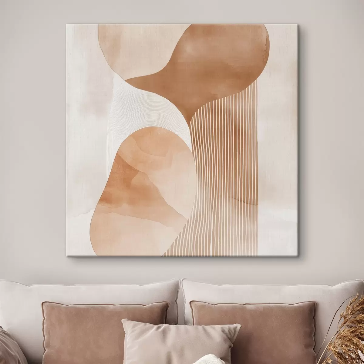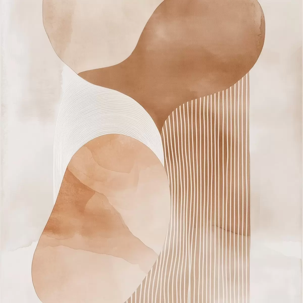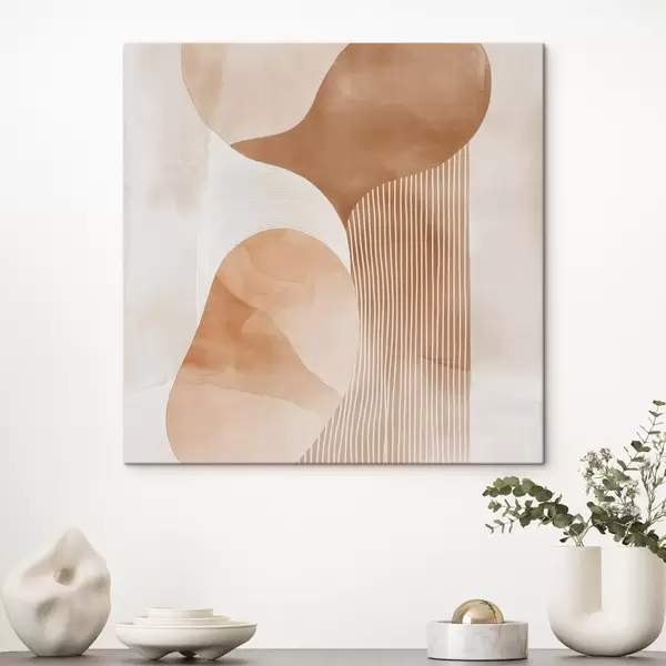 Quadri Arte decorativa in una calda palette di colori beige-corallo con effetto acquerello Nr s48870