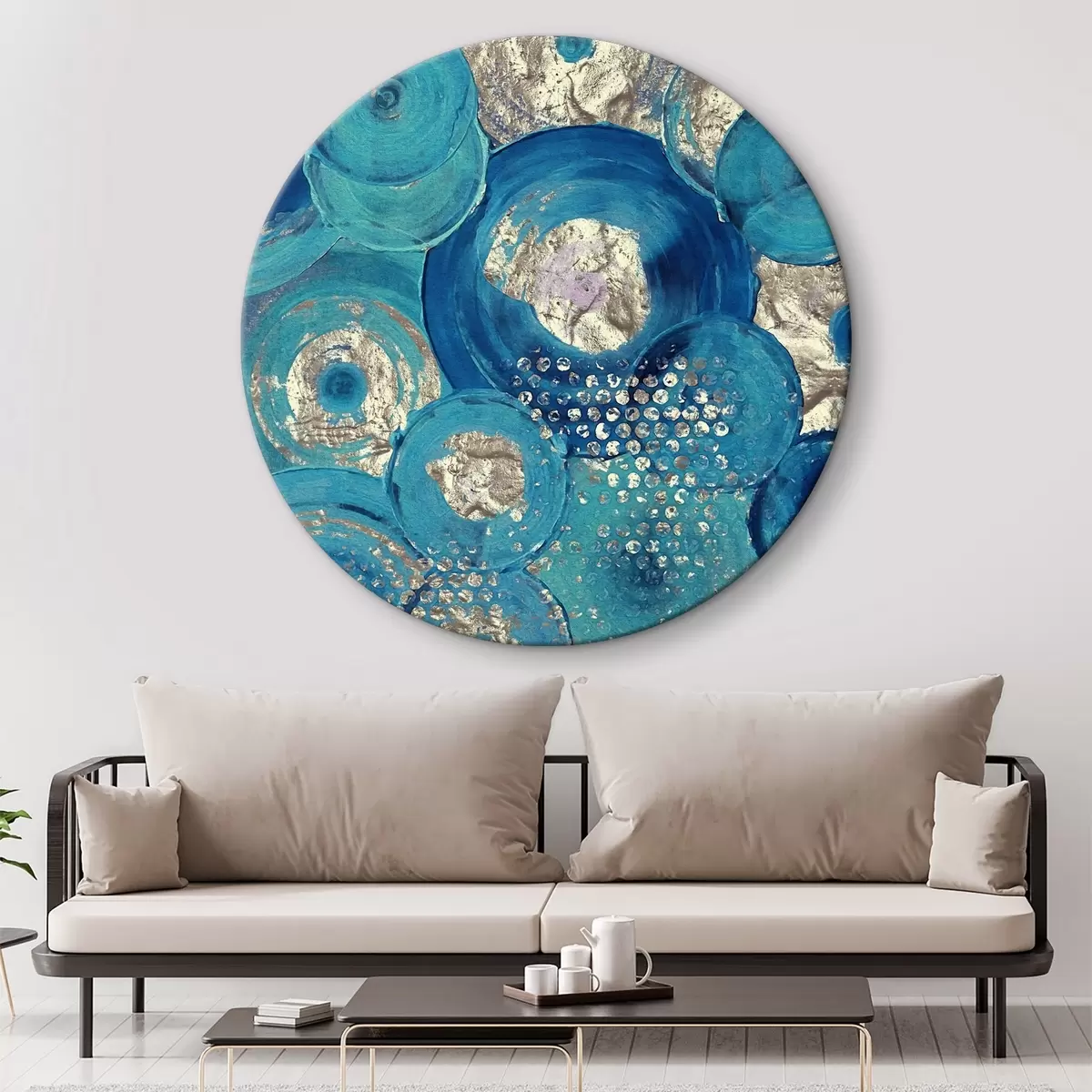 Quadri rotondi Cerchi azzurri con puntini, colori a olio r01035