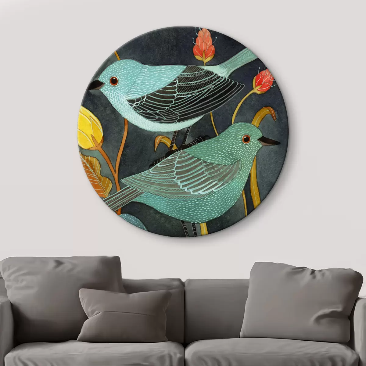 Quadri rotondi Tre uccelli si guardano intorno r03061